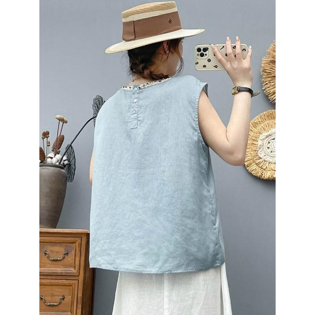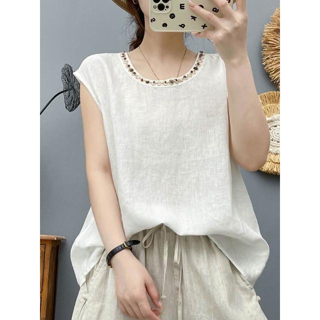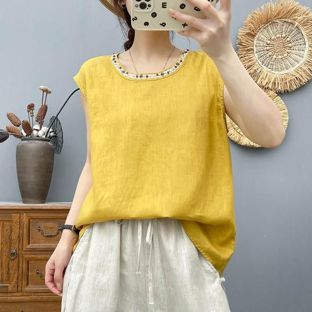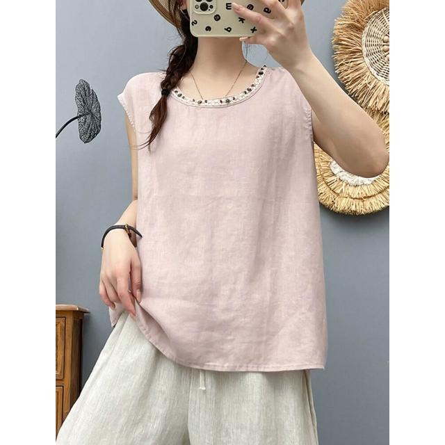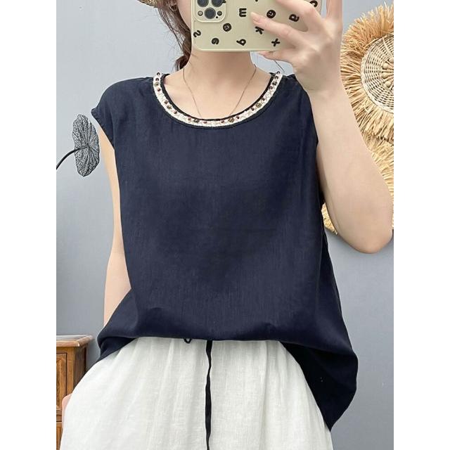 Quality生活 2026新款夏季亞麻圓領小衫女復古文藝氣質襯衣寬松襯衫女裝潮流 ecf