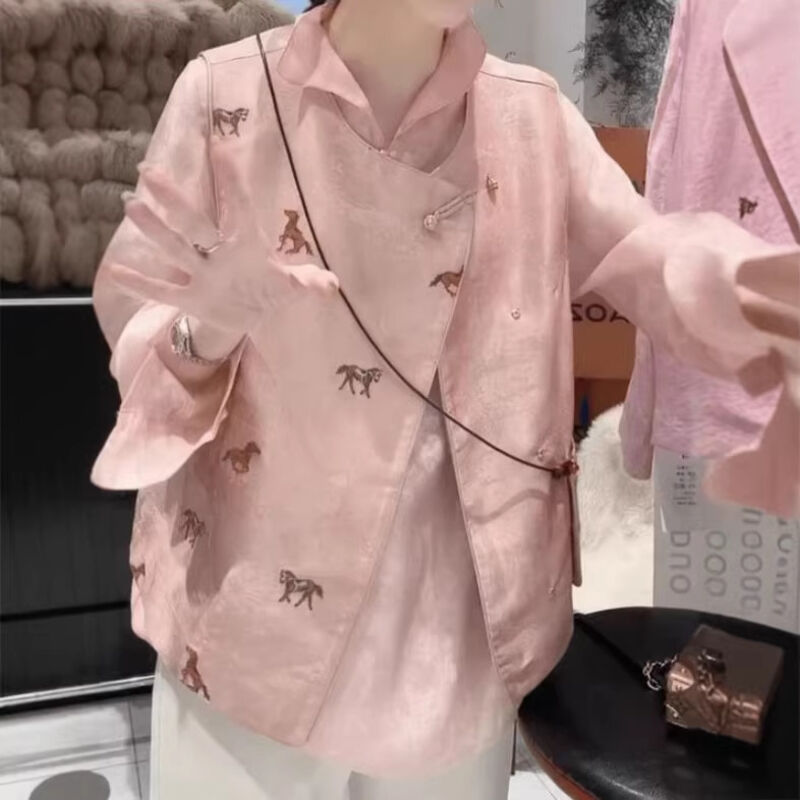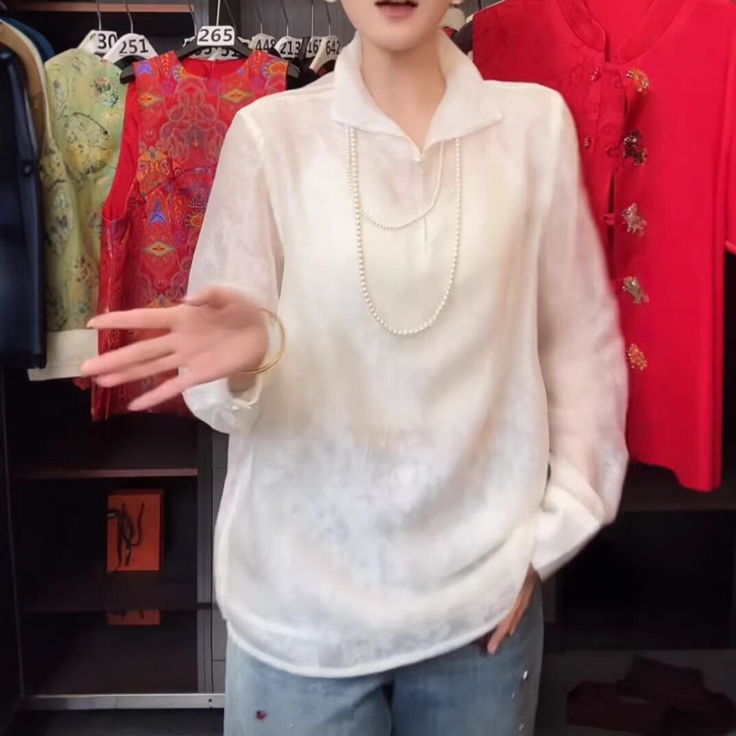 Quality生活 春季新款中式國風內搭小衫馬甲內搭長袖打底衫襯衫上衣T恤 47d