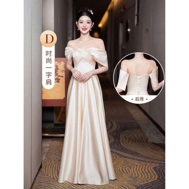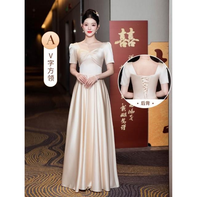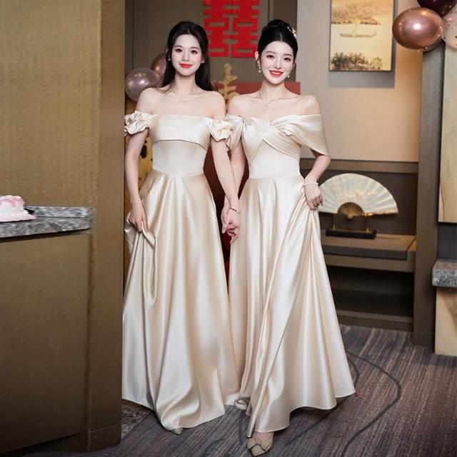 Quality生活 香槟色伴娘服緞面2025新款夏季小眾高級感婚禮姐妹團晚禮服裙顯瘦 3be