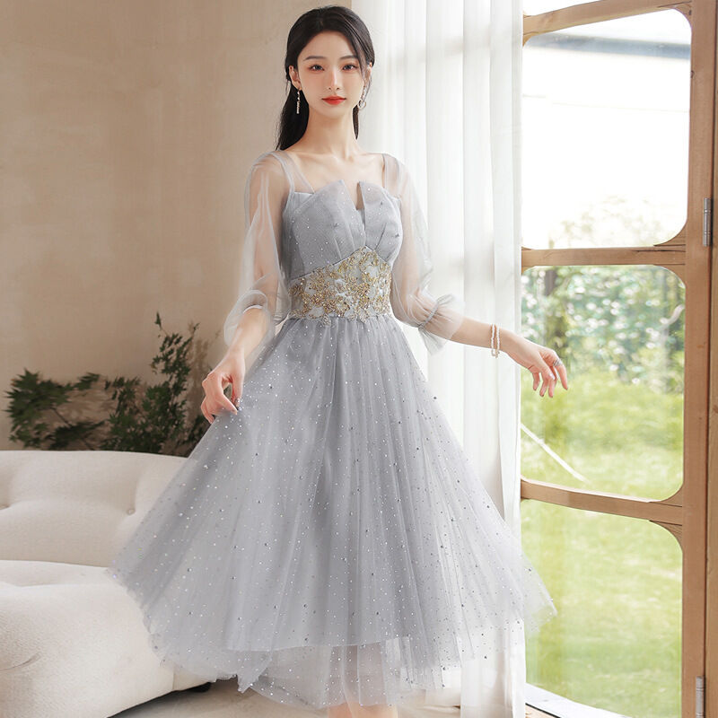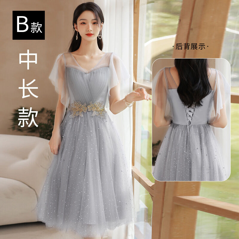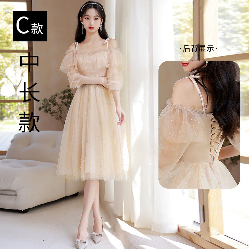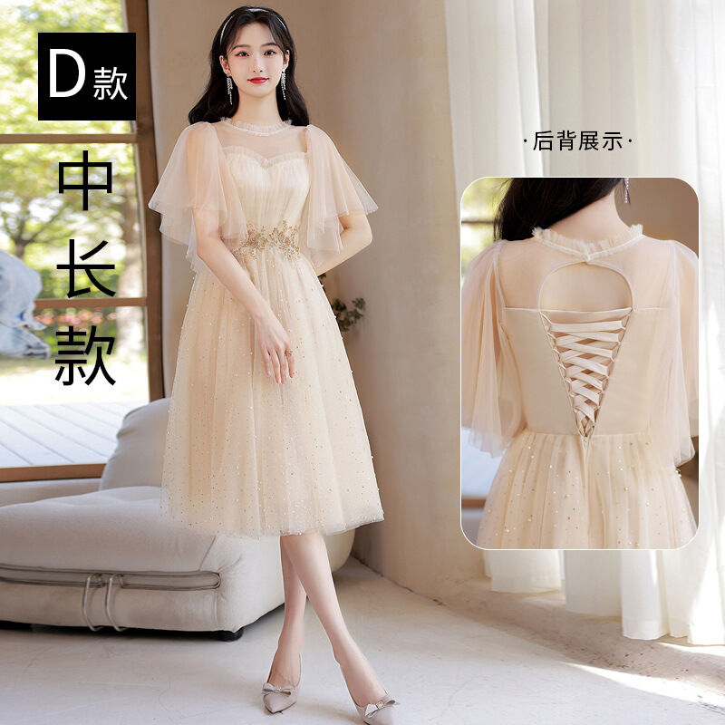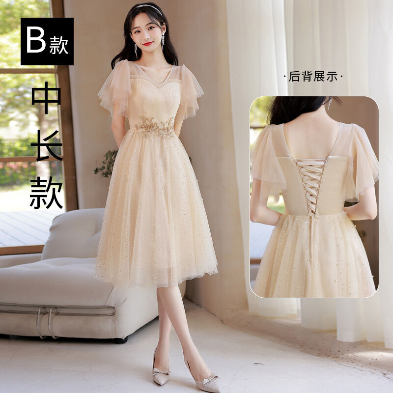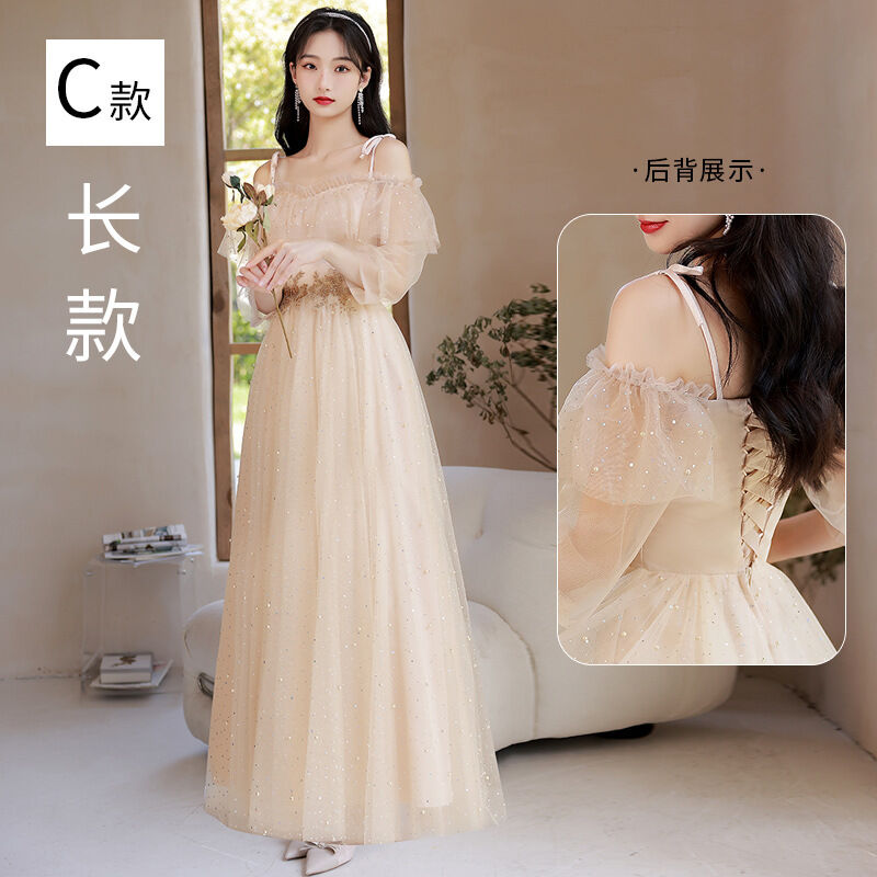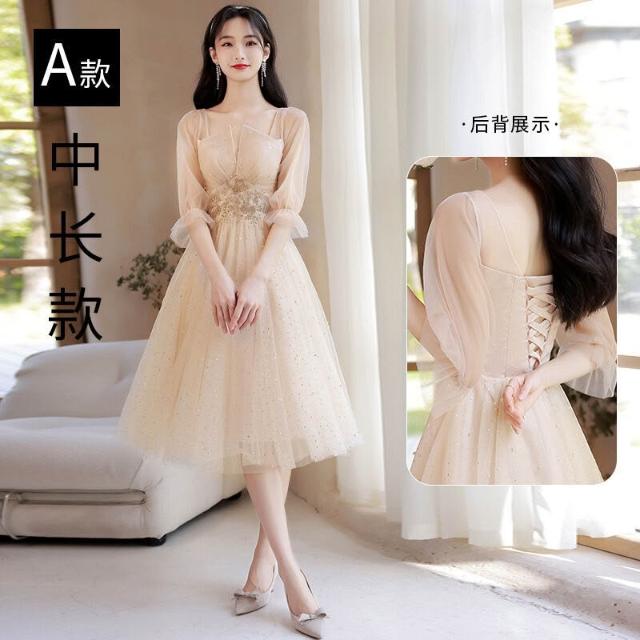 Quality生活 伴娘服香槟色氣質顯瘦2026新款主持人姐妹團伴娘團禮服仙氣晚禮服 844
