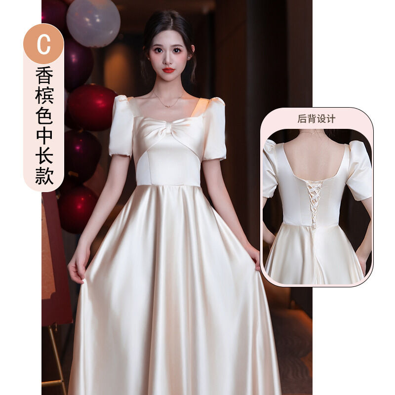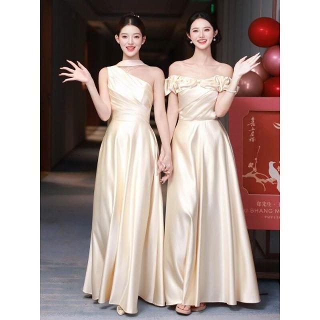 Quality生活 絕美年會感伴娘服2026新款香槟色緞面姐妹團禮服裙女小眾日常可穿 50b