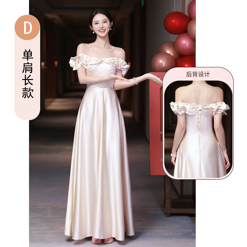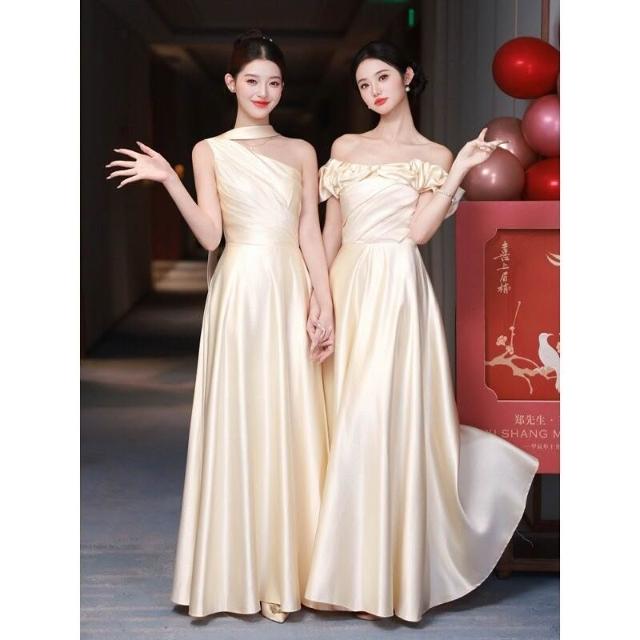 Quality生活 絕美年會感伴娘服2026新款香槟色緞面姐妹團禮服裙女小眾日常可穿 50b