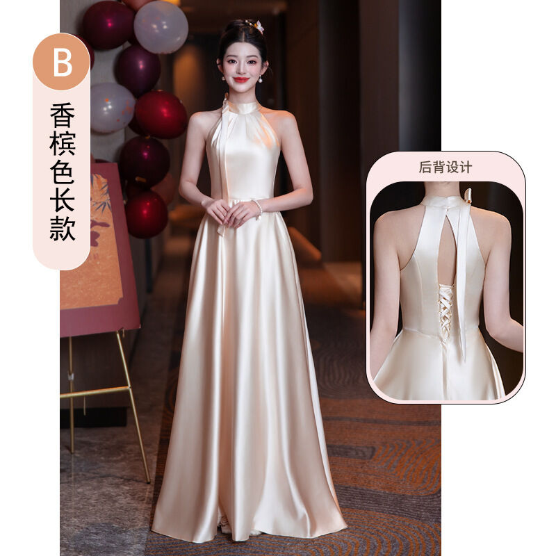 Quality生活 絕美年會感伴娘服2026新款香槟色緞面姐妹團禮服裙女小眾日常可穿 50b