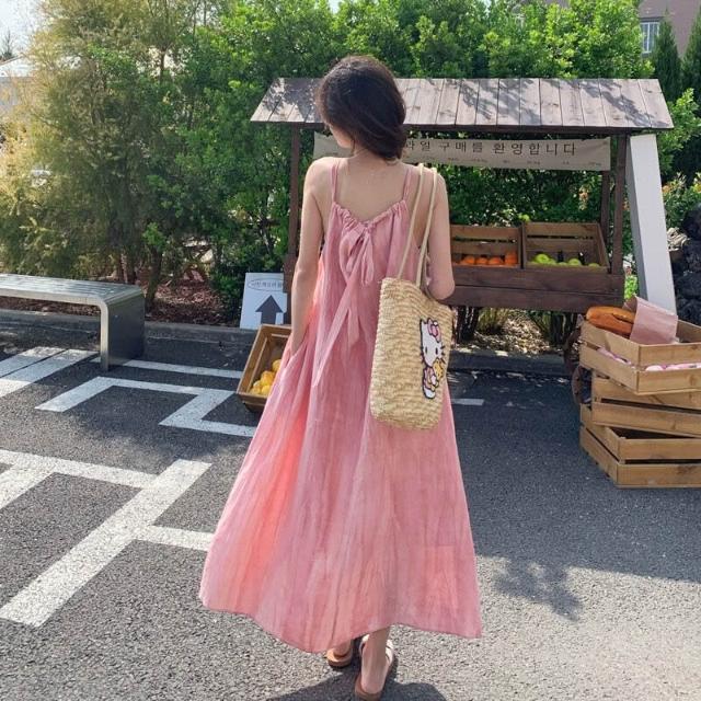 Quality生活 粉色吊帶長裙女裝夏季新款海邊度假沙灘連衣裙設計感小眾裙子女裝 72c