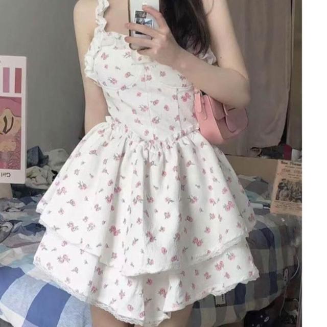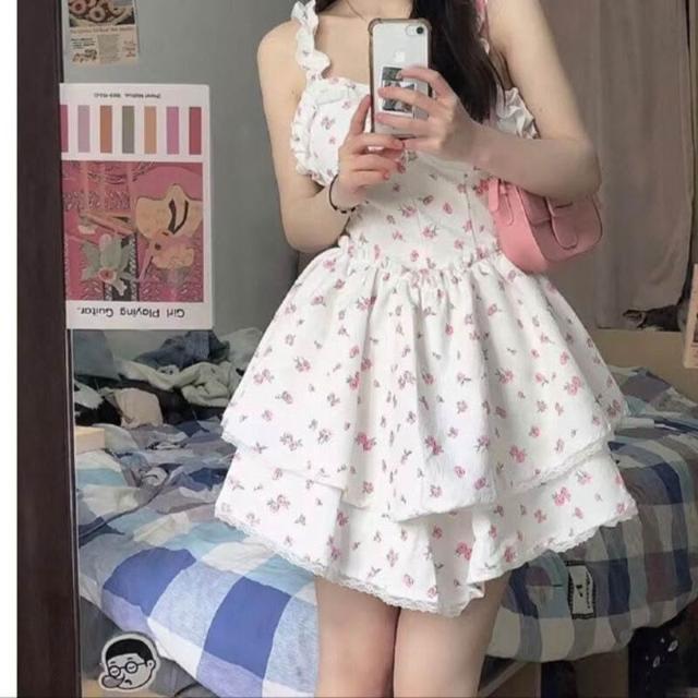 Quality生活 夏季新款少女連衣裙甜欲風女碎花吊帶休閑短裙 1a4
