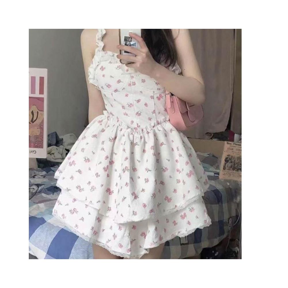 Quality生活 夏季新款少女連衣裙甜欲風女碎花吊帶休閑短裙 1a4