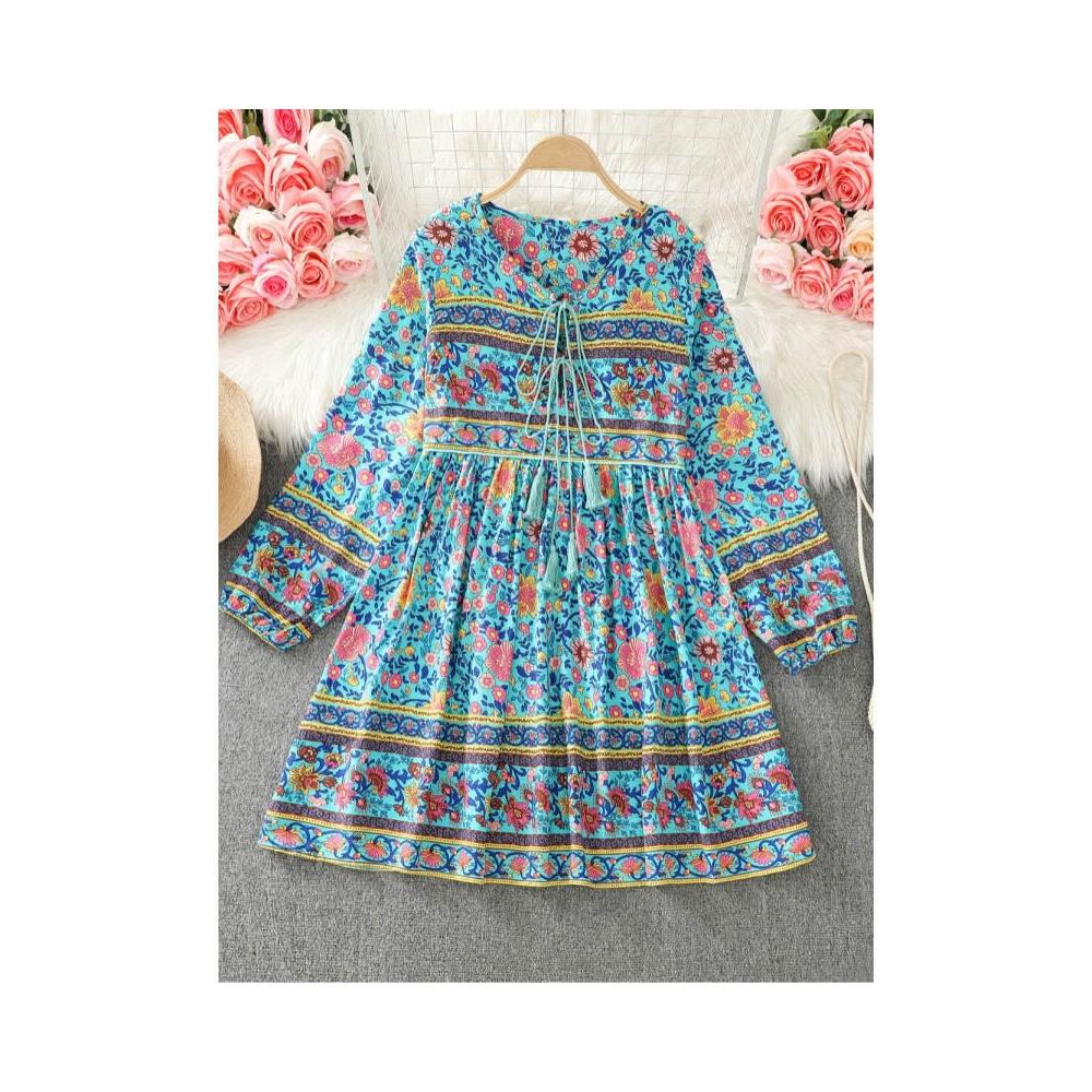 Quality生活 海邊度假印花沙灘裙小個子泰國民族風連衣裙短裙巴厘島海灘裙 d8a
