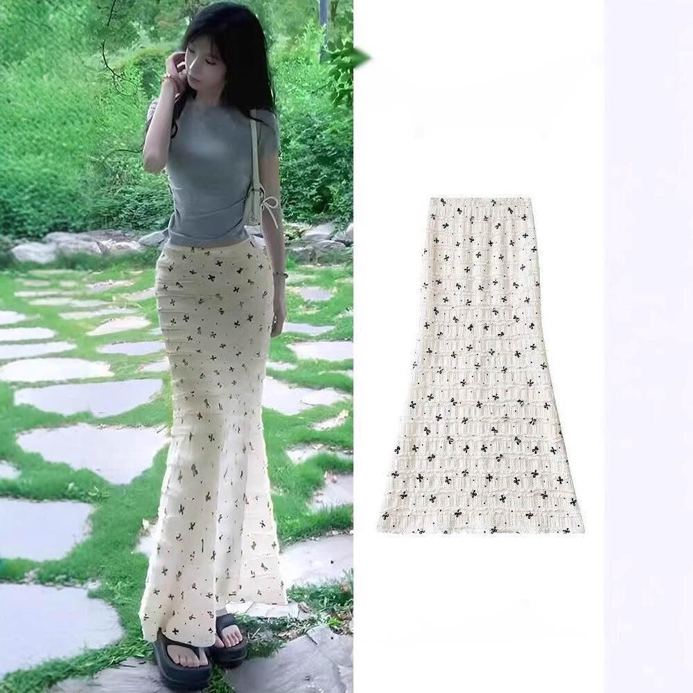 Quality生活 白色蕾絲半身裙女夏季2026新款溫柔小個子包臀裙蝴蝶結碎花魚尾裙 f1c