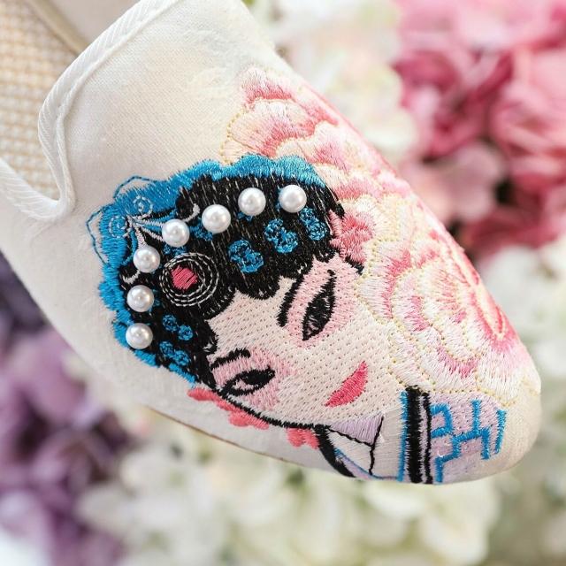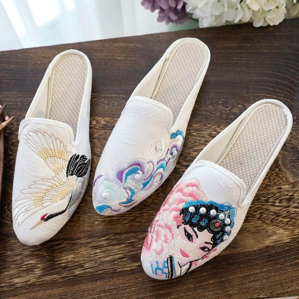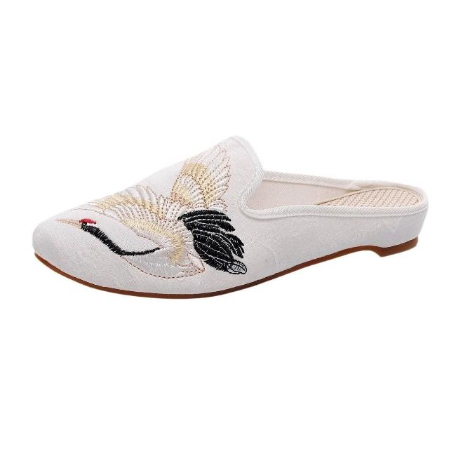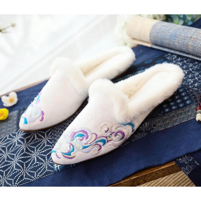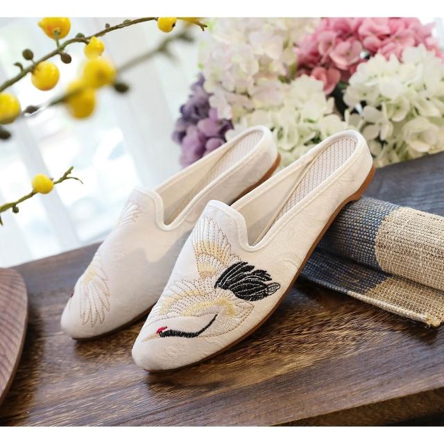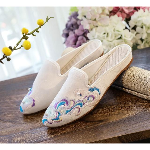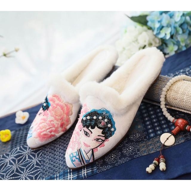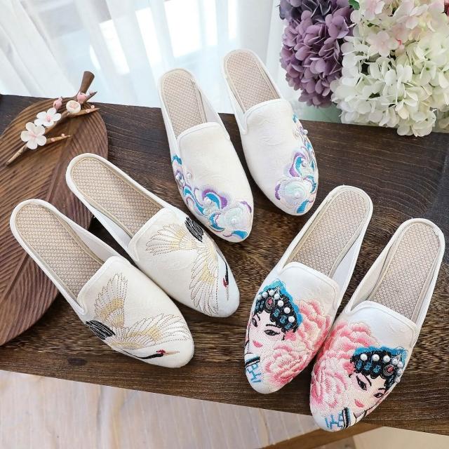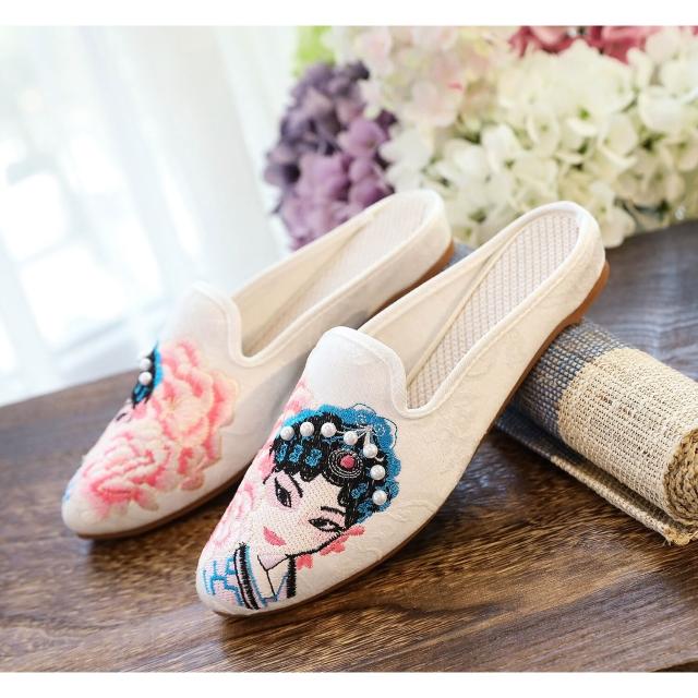 Quality生活 拖鞋 單拖/棉拖 尖頭時尚中式國風復古繡花布藝女鞋 423