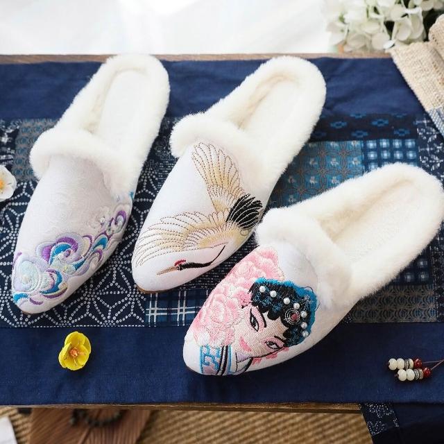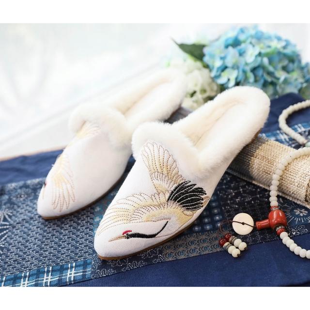Quality生活 拖鞋 單拖/棉拖 尖頭時尚中式國風復古繡花布藝女鞋 423