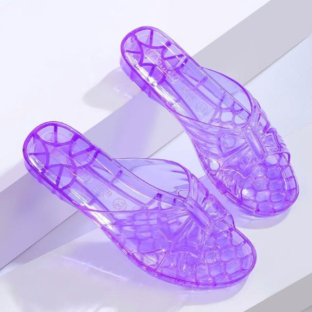 Quality生活 新款浴室塑膠拖鞋外穿夏季水晶水晶鞋女士防滑透明防臭塑料果凍 fd8