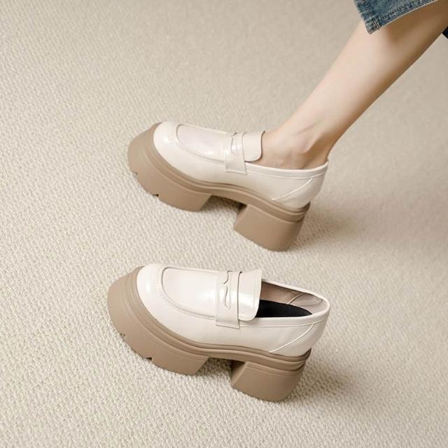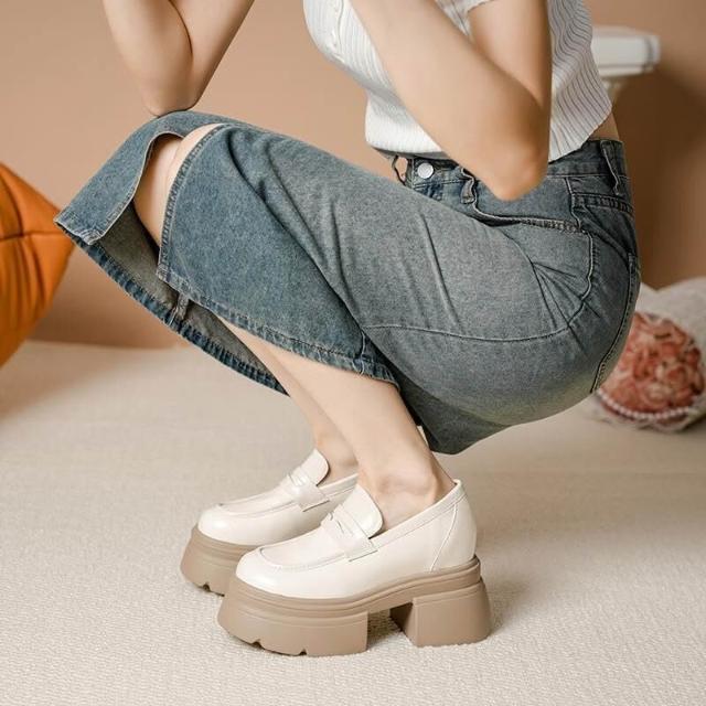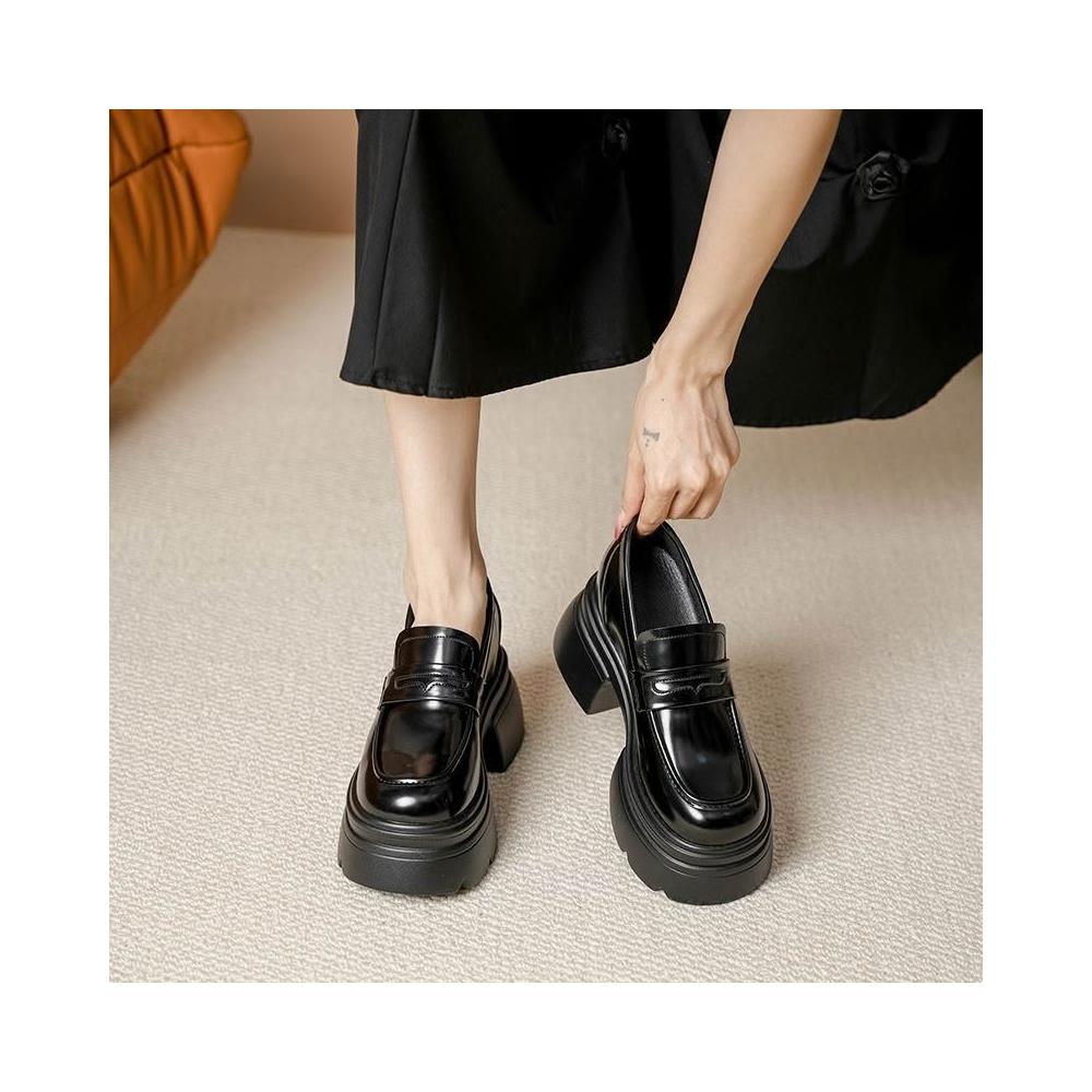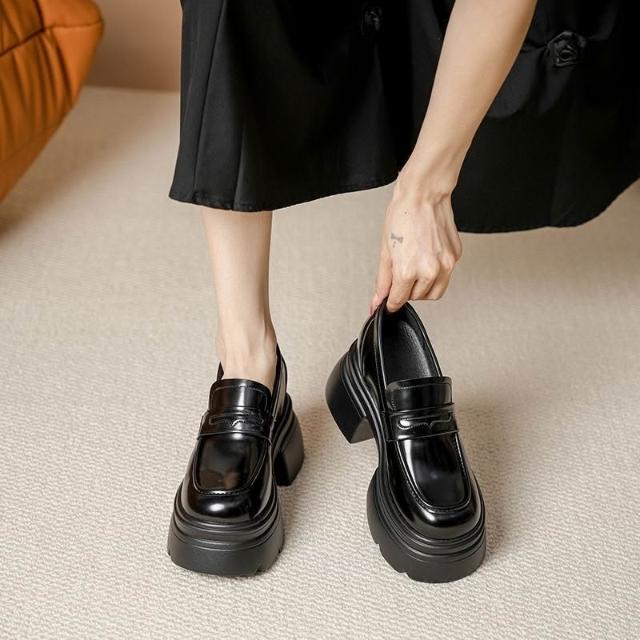 Quality生活 厚底超高跟樂福鞋女小個子內增高12cm松糕鞋黑色JK製服小皮鞋英倫 136