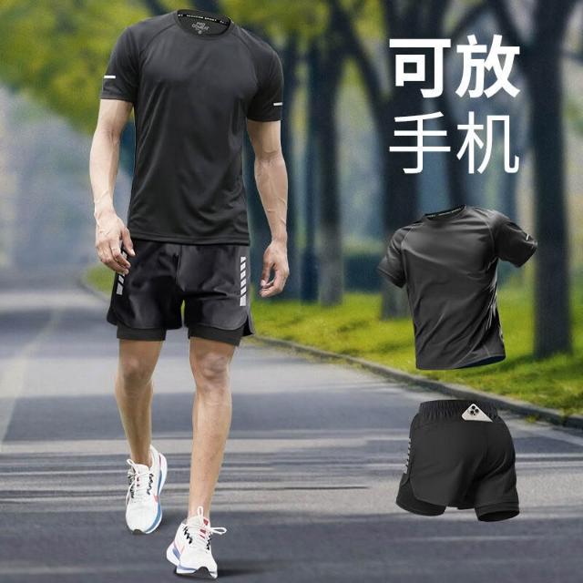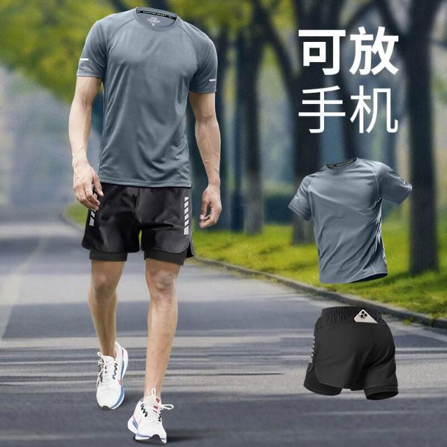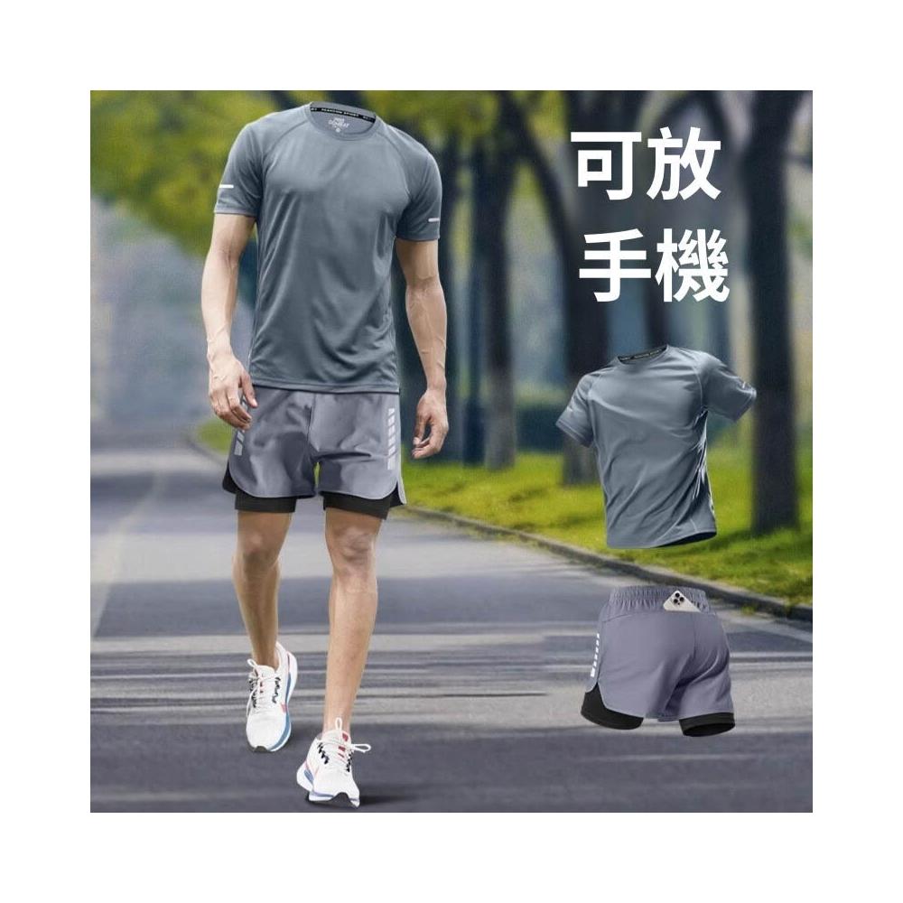 Quality生活 夏季運動套裝男網眼速幹短袖短褲帶口袋運動服套裝男 504