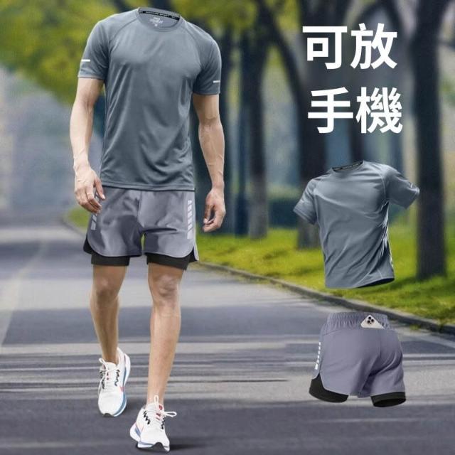 Quality生活 夏季運動套裝男網眼速幹短袖短褲帶口袋運動服套裝男 504