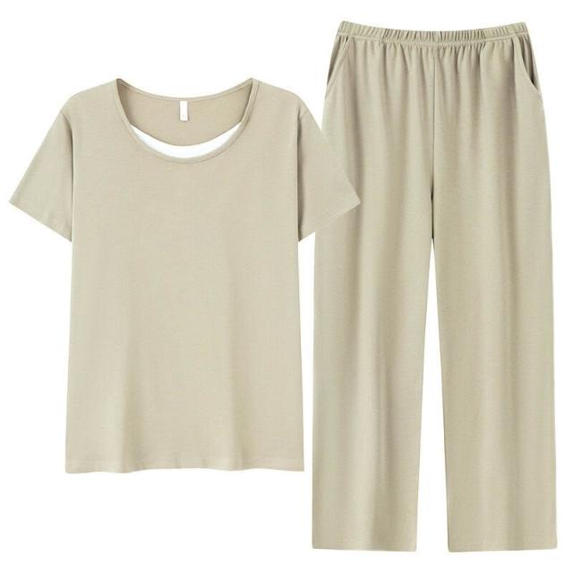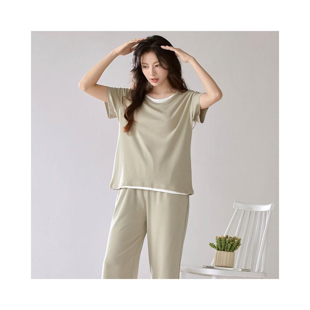 Quality生活 夏季薄款短袖女睡衣夏天睡衣套裝空調長褲套頭家居服 a67