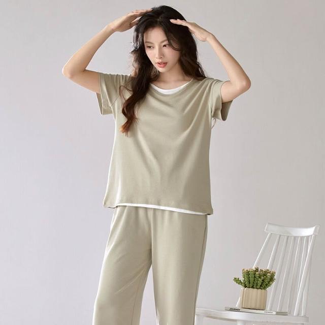 Quality生活 夏季薄款短袖女睡衣夏天睡衣套裝空調長褲套頭家居服 a67
