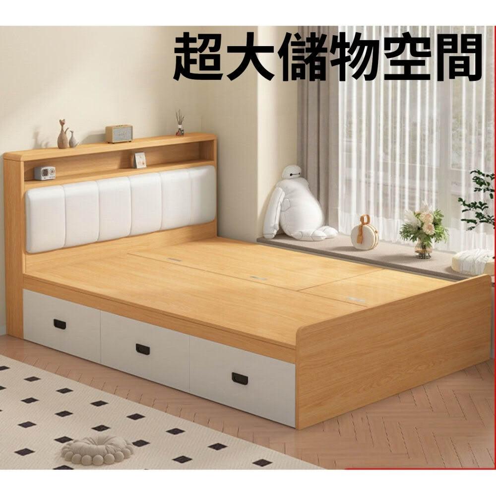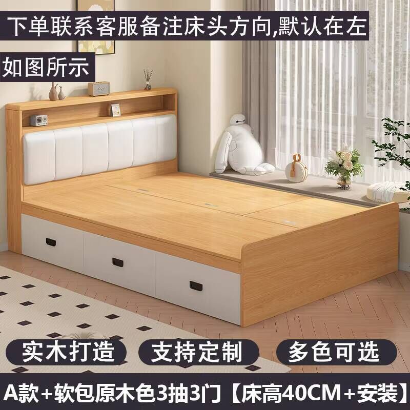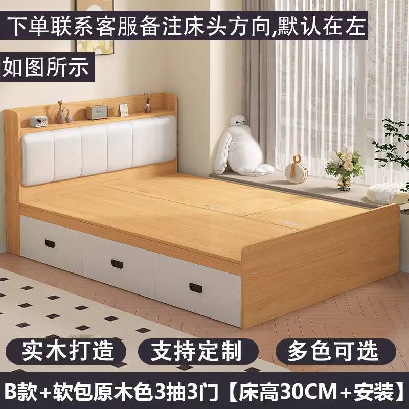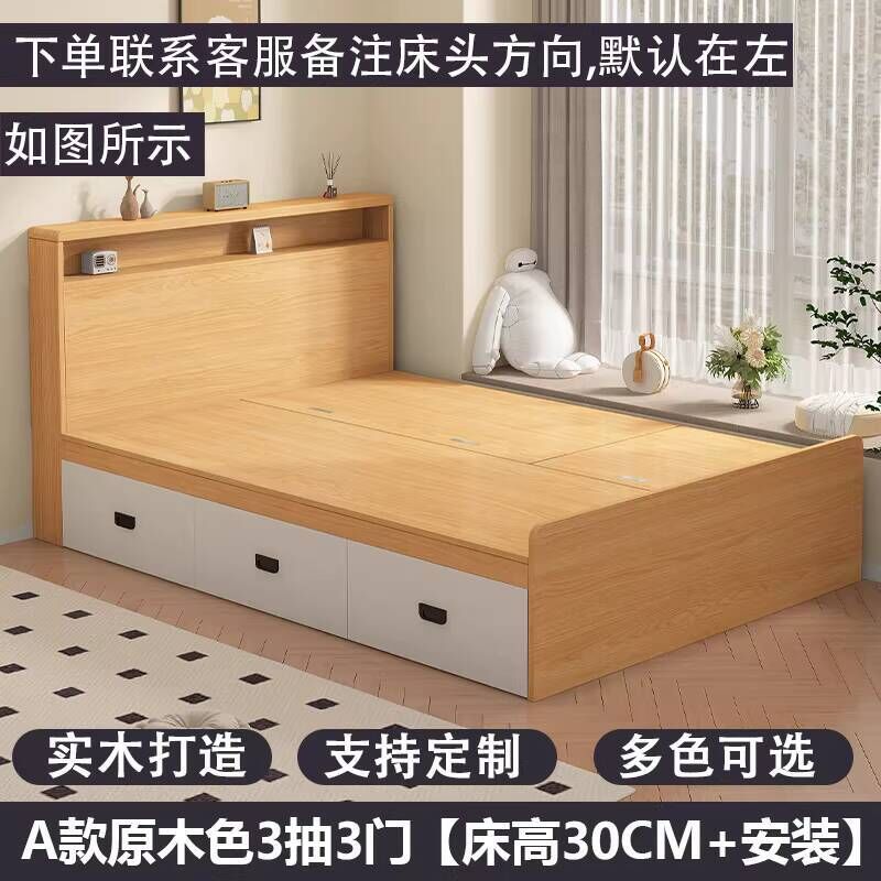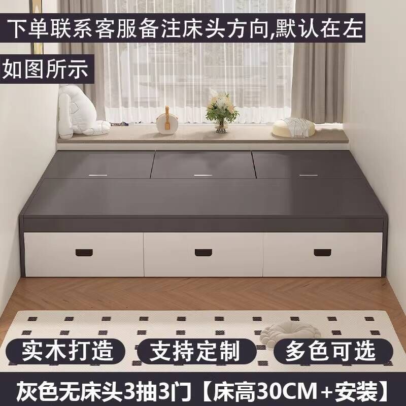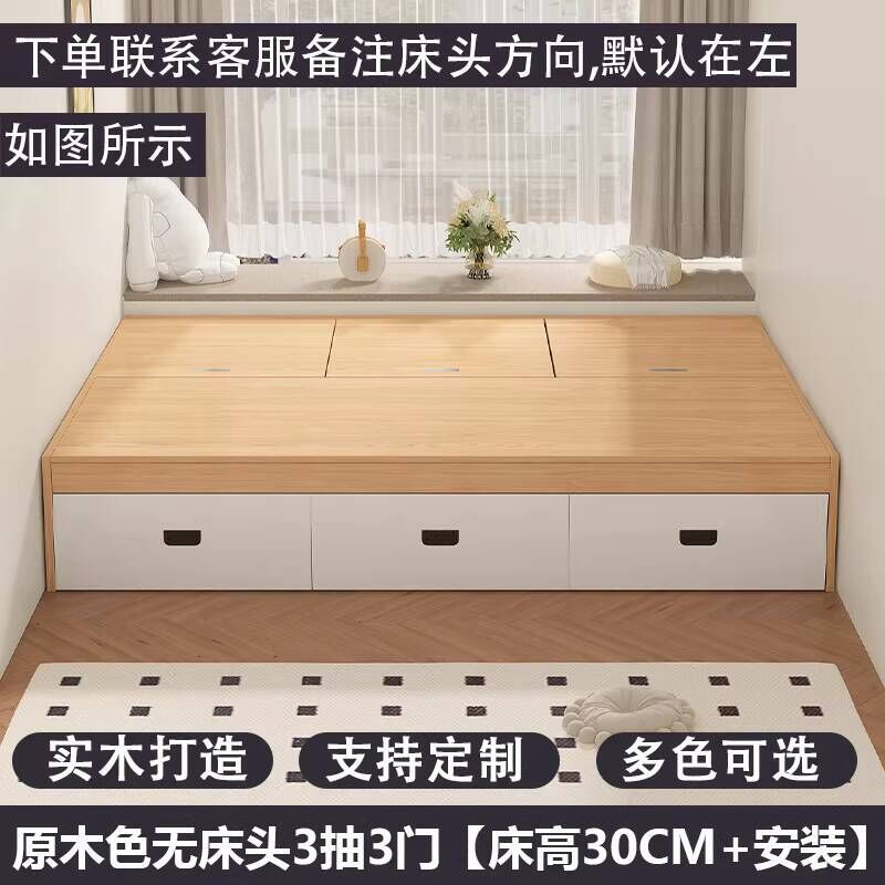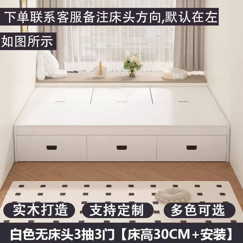 實木床1米8雙人床臥室家用榻榻米床架1.2/35/5地臺收納儲物床定製 82e