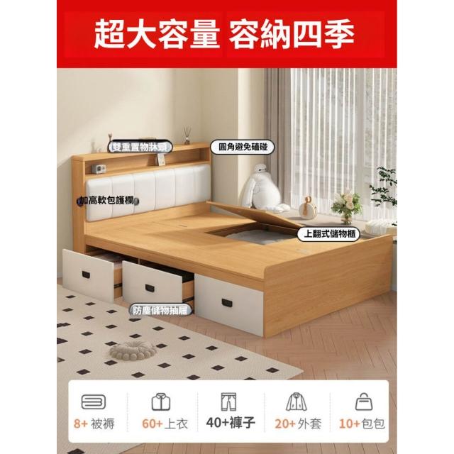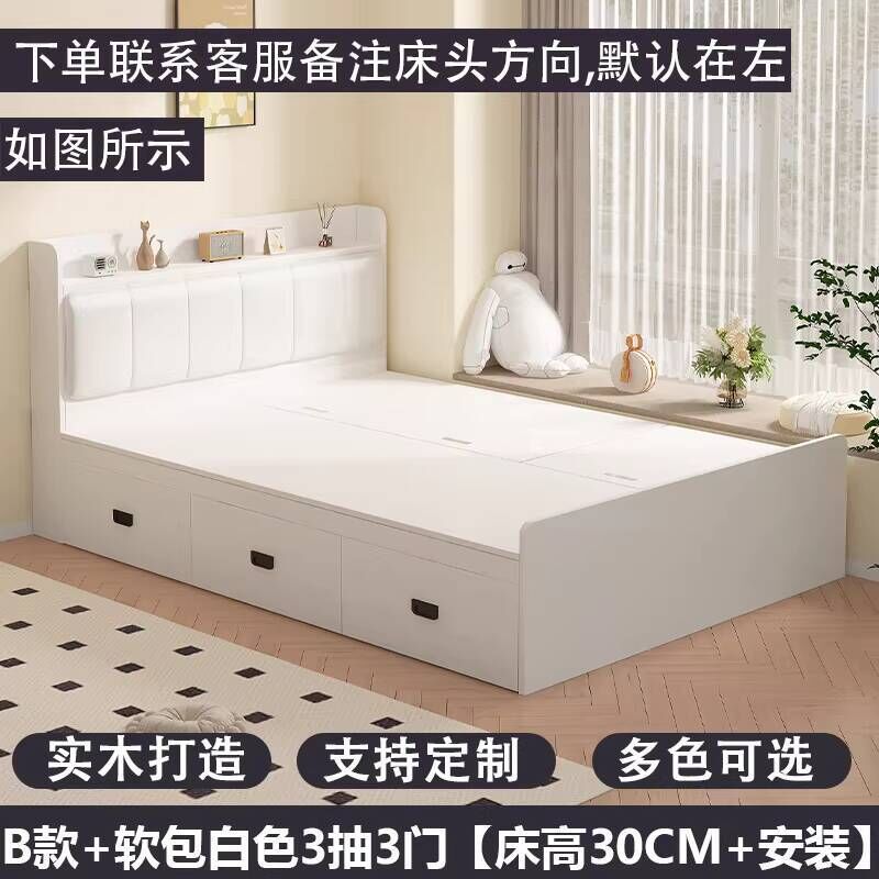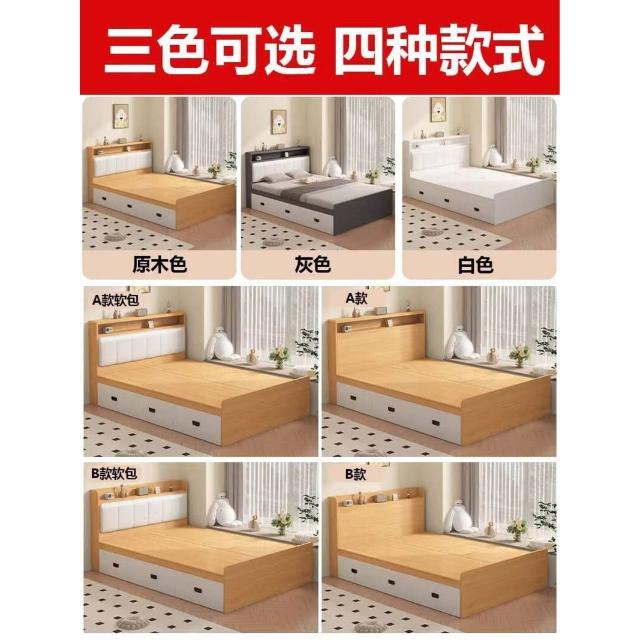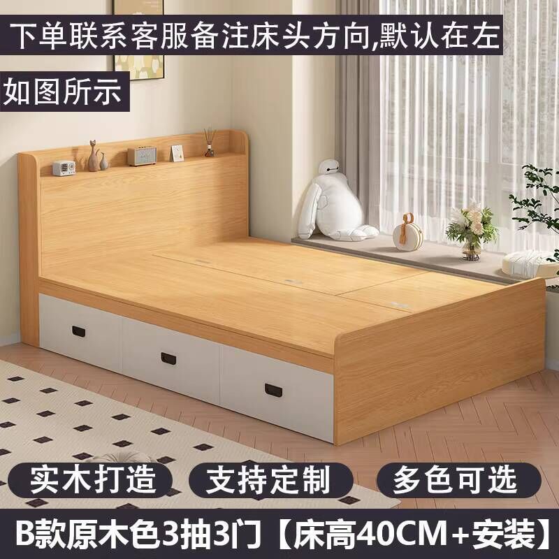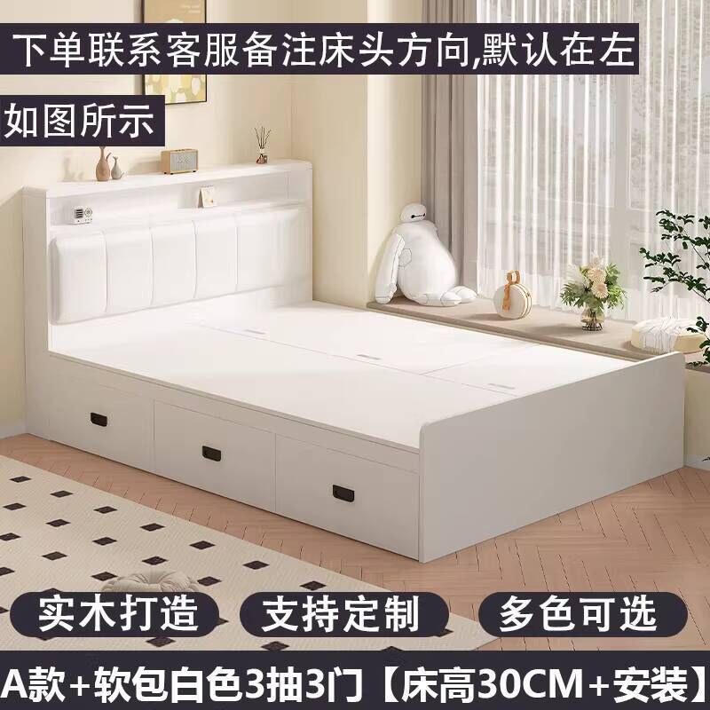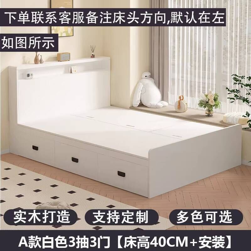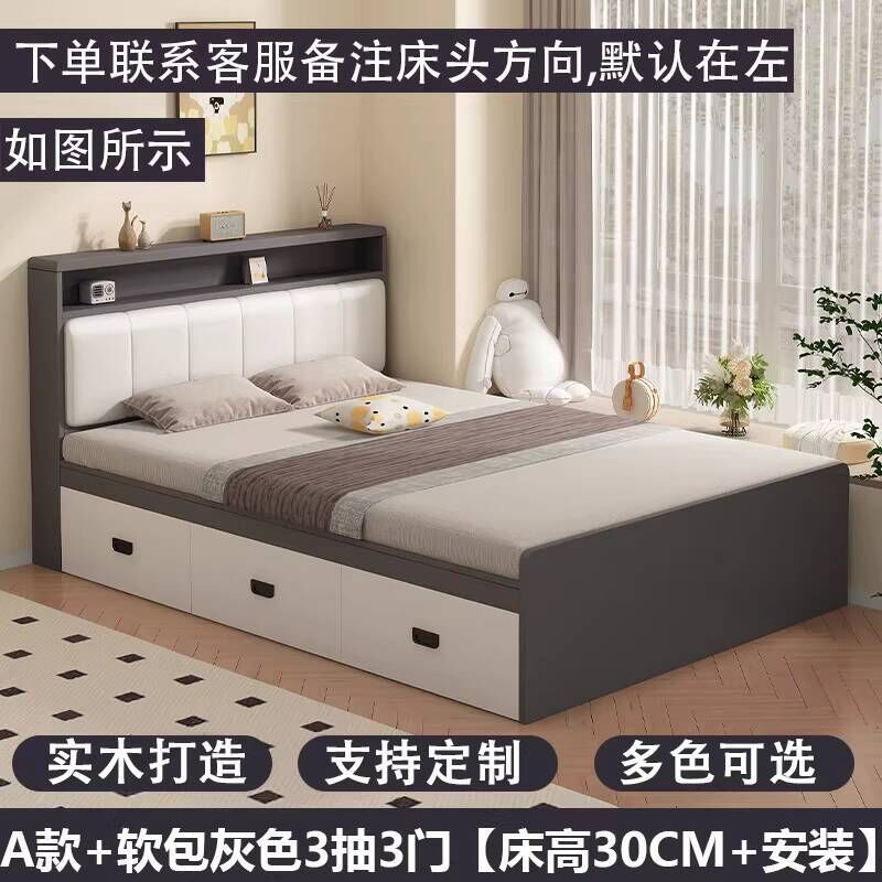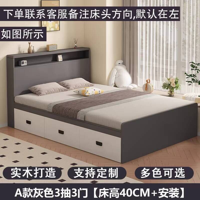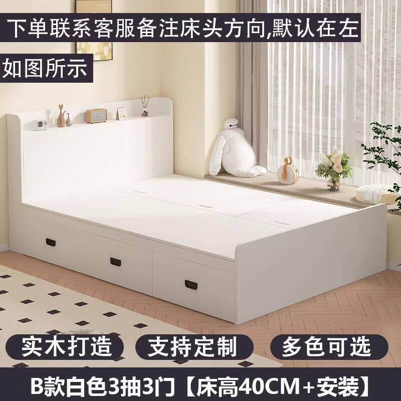 實木床1米8雙人床臥室家用榻榻米床架1.2/35/5地臺收納儲物床定製 82e