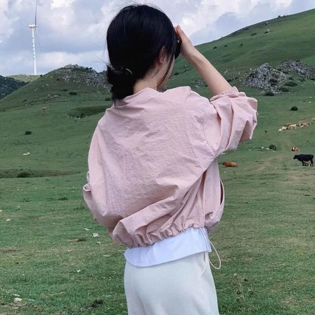 美式粉色沖鋒衣外套女2026春秋新款高級感超好看短款防曬輕薄夾克 d26