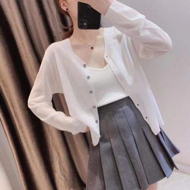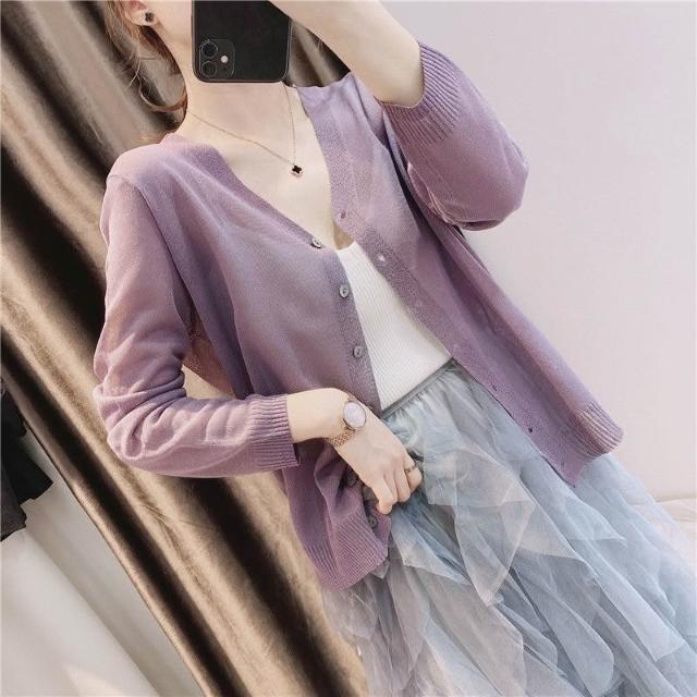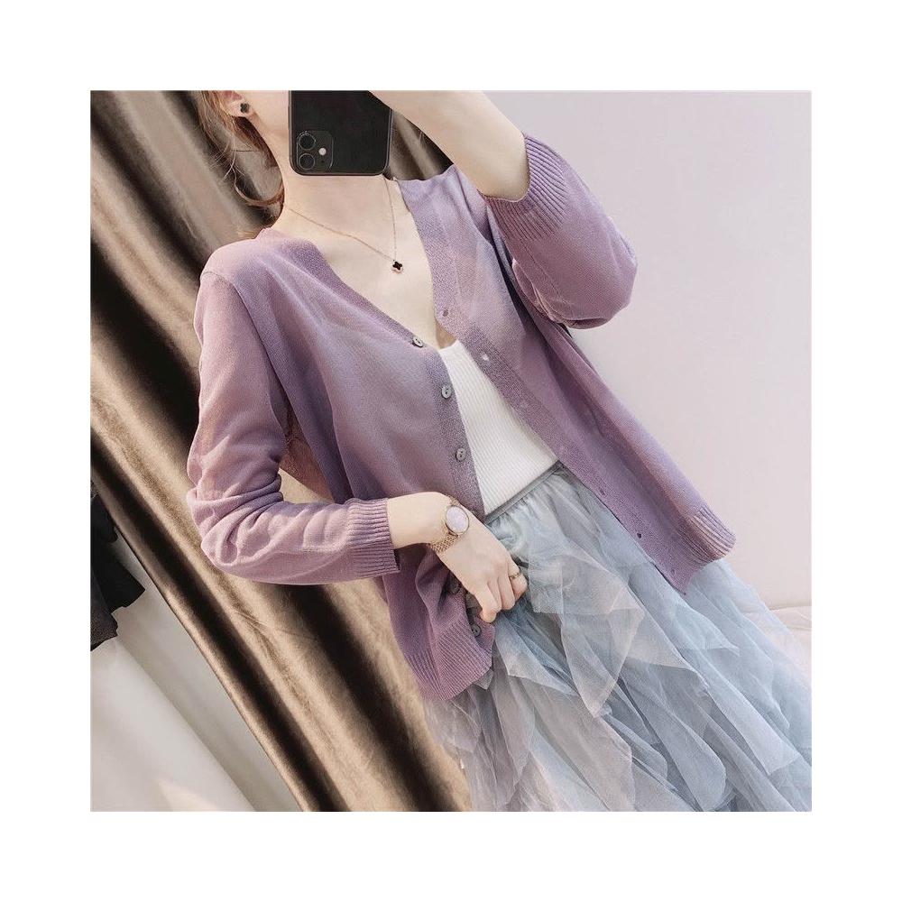 針織開衫女夏季薄款2024年新款冰絲防曬衣外搭空調衫簡約小外套潮 522
