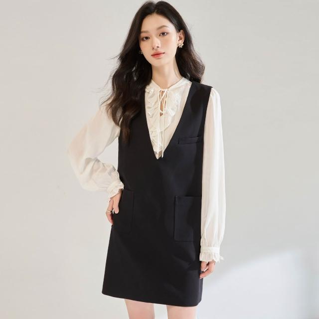 26春季法式荷葉邊系帶設計感V領白色襯衫泡泡袖浪漫天絲小衫60 df2