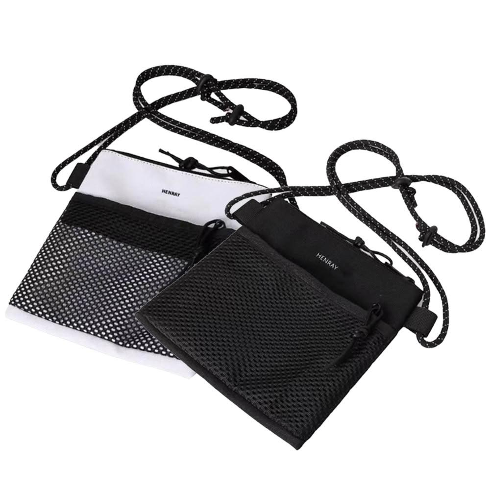 韓版斜背包(時尚黑/棉花白) 尼龍網眼小包 抽繩背帶 單肩包 側背包 潮流韓系小包 超輕便