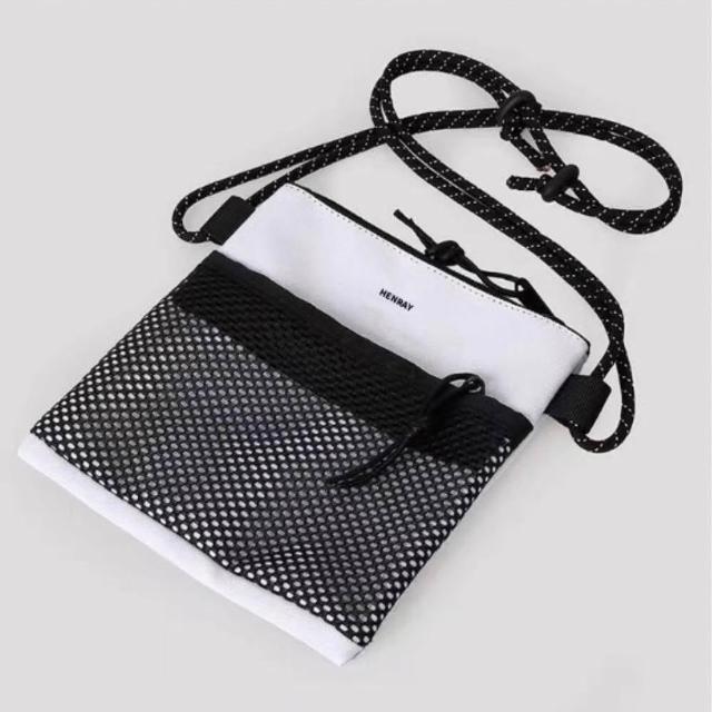 韓版斜背包(時尚黑/棉花白) 尼龍網眼小包 抽繩背帶 單肩包 側背包 潮流韓系小包 超輕便
