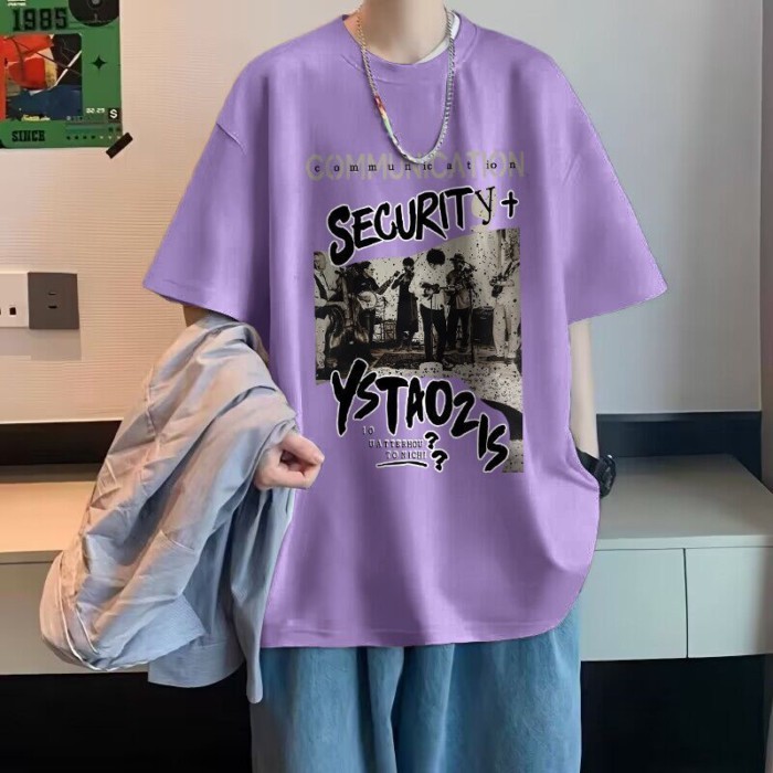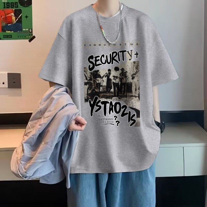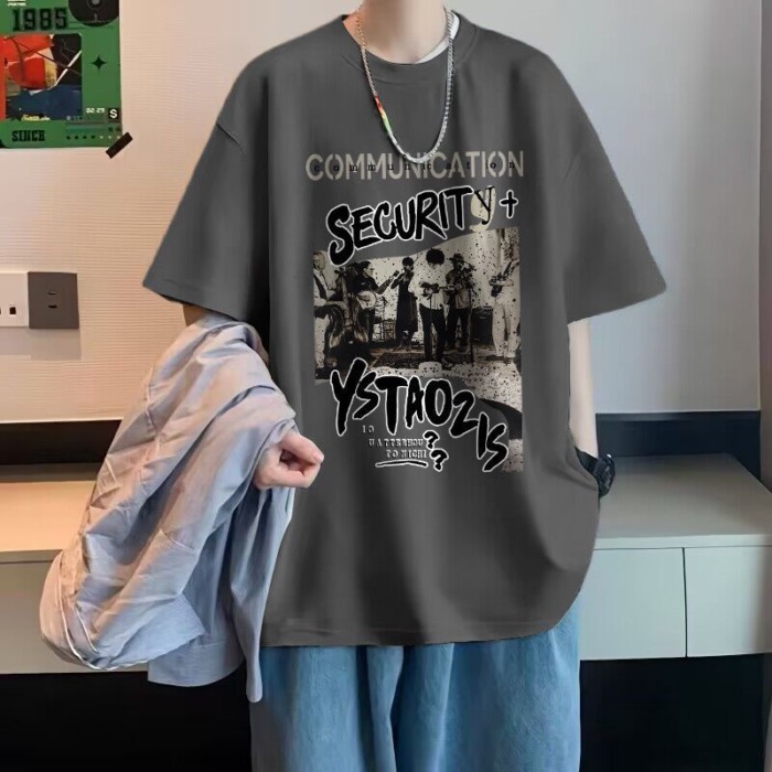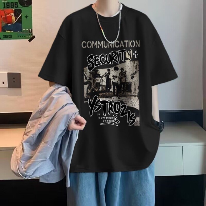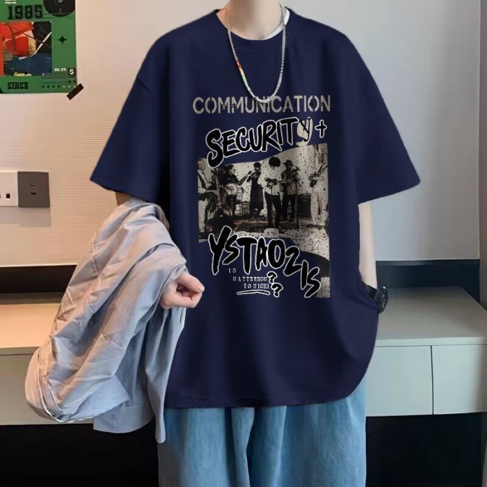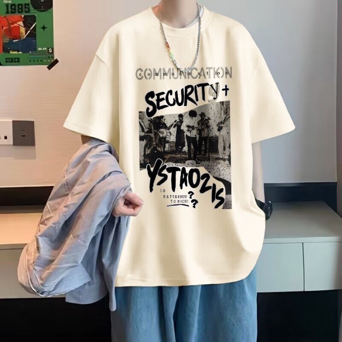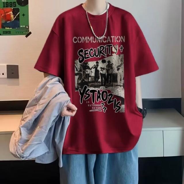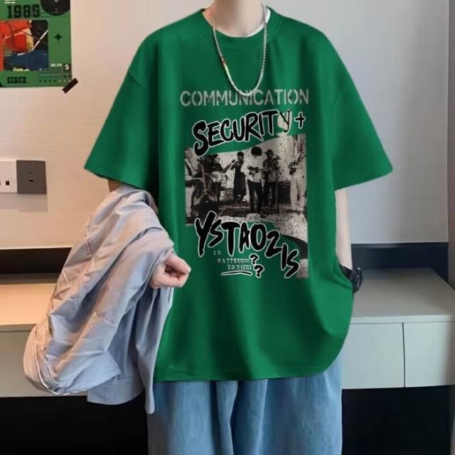 100%美式短袖T恤嘻哈潮牌全棉短袖t恤男款高街復古oversize上衣潮