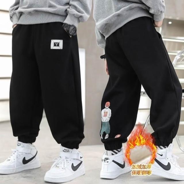 男童加絨褲子秋冬款2025新款長褲秋裝中大兒童休閒運動褲男孩衛褲