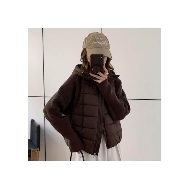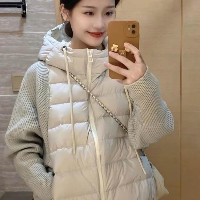 爆款針織拼接假兩件羽絨棉服韓版寬鬆冬季小個子短款棉衣外套