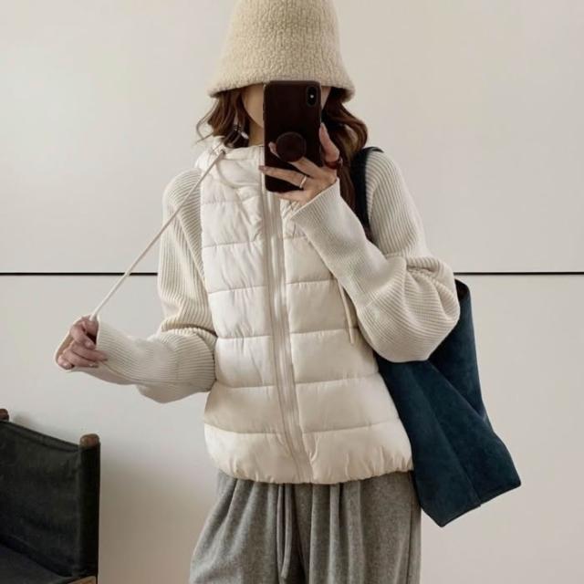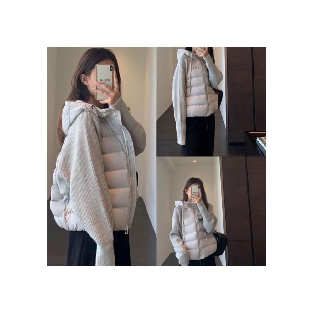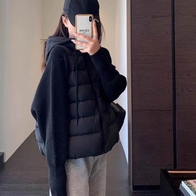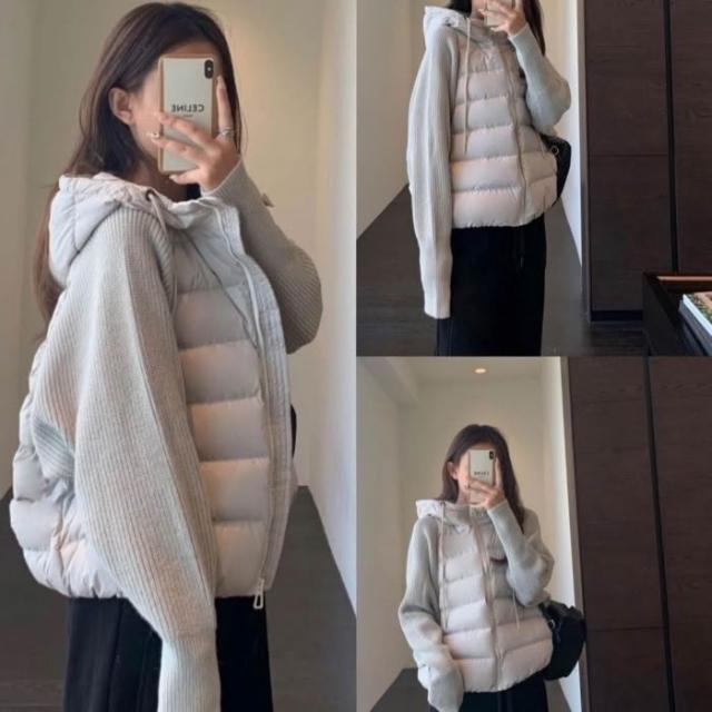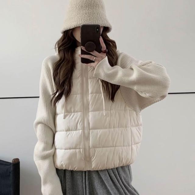 爆款針織拼接假兩件羽絨棉服韓版寬鬆冬季小個子短款棉衣外套
