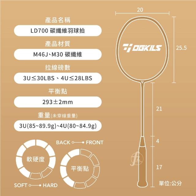 OGKILSLD700碳纖維羽球拍(空拍)/速度型球拍/羽毛球拍/全碳素/柳丁/毆擊