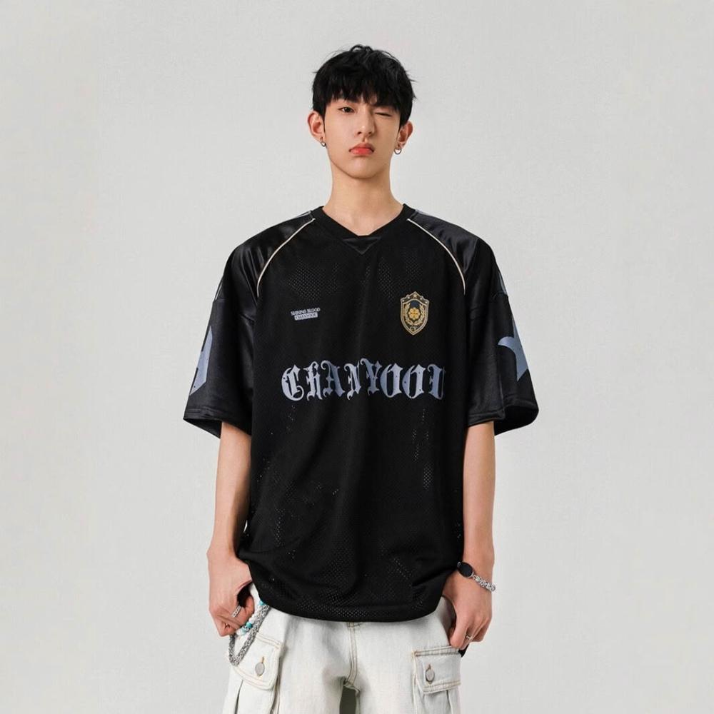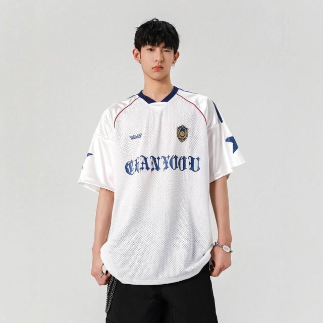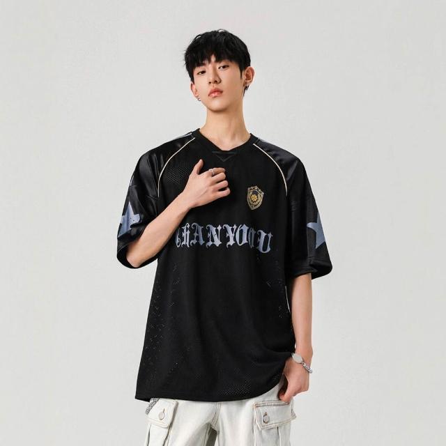 🚀虧本衝評&限時下殺🔥T恤 短袖T恤 短袖上衣 夏季男裝 美式運動镂空透氣短袖球服夏季高街設計感潮牌復古情侶t恤上衣