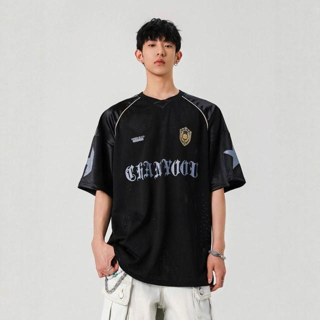 🚀虧本衝評&限時下殺🔥T恤 短袖T恤 短袖上衣 夏季男裝 美式運動镂空透氣短袖球服夏季高街設計感潮牌復古情侶t恤上衣