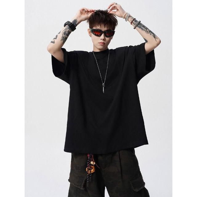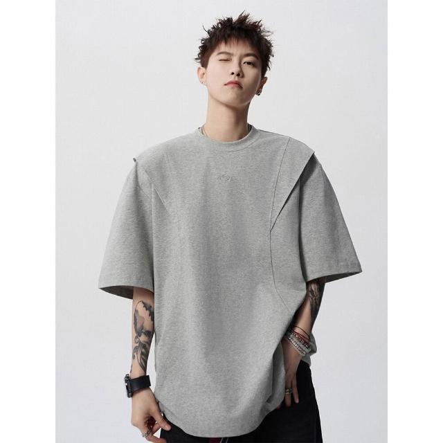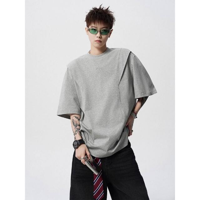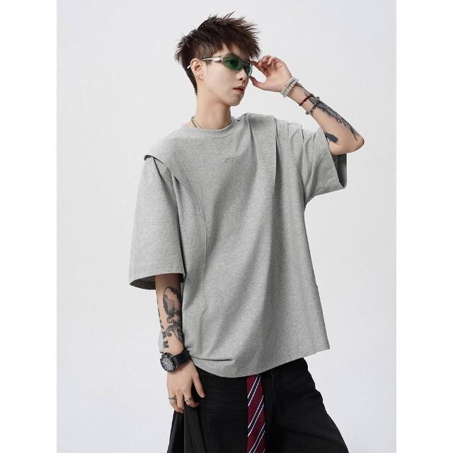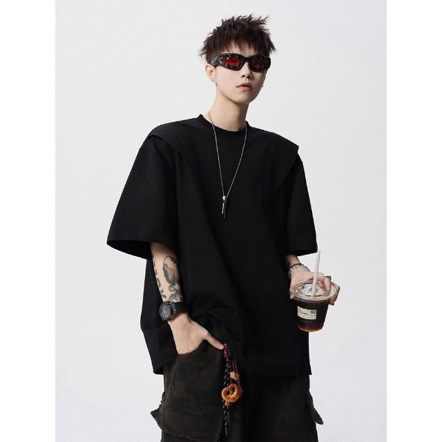 🚀虧本衝評&限時下殺🔥T恤 短袖T恤 短袖上衣 夏季男裝 活頁剪裁短袖T恤男夏美式高街解構圓領套頭衫潮牌設計感寬鬆