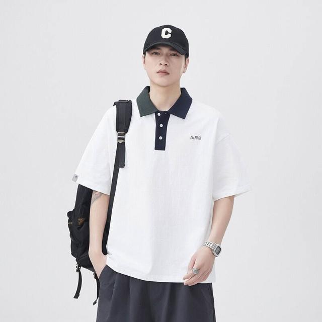 🚀虧本衝評&限時下殺🔥T恤 短袖T恤 短袖上衣 夏季男裝 美式重磅250g復古Polo衫短袖t恤夏季潮牌新疆棉半袖