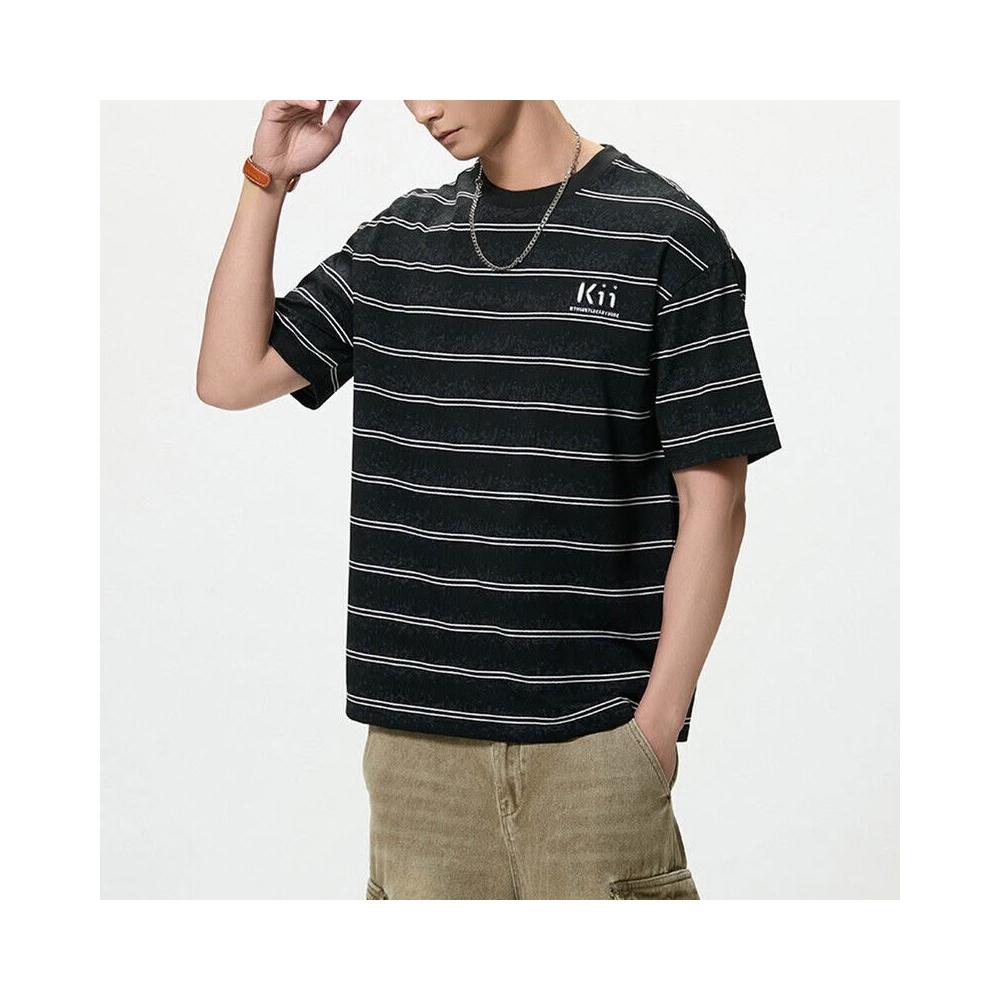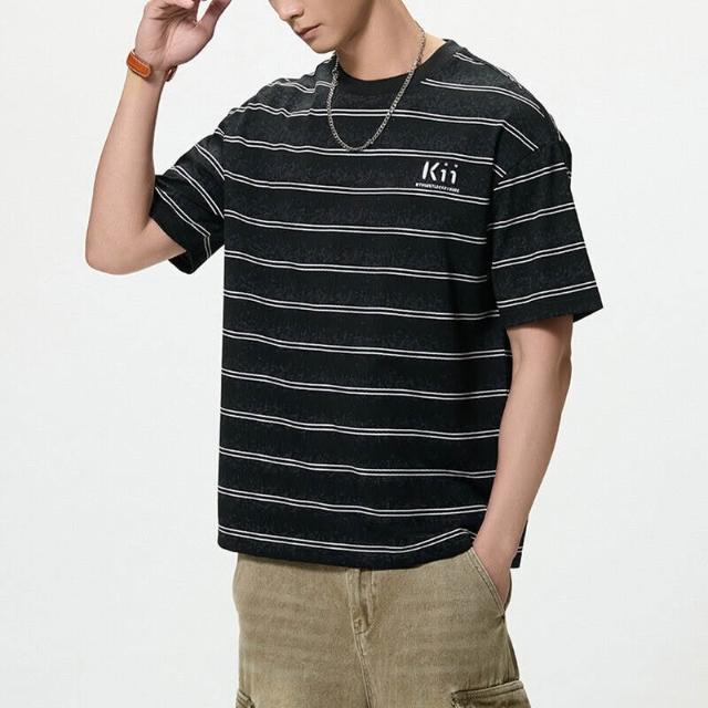 🚀虧本衝評&限時下殺🔥T恤 短袖T恤 短袖上衣 夏季男裝 200g條紋短袖t恤男士夏季寬鬆涼感休閒運動半袖上衣T恤男