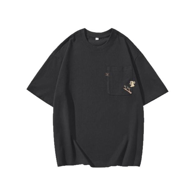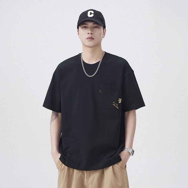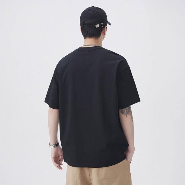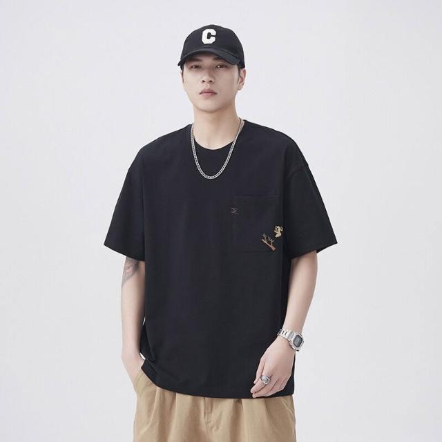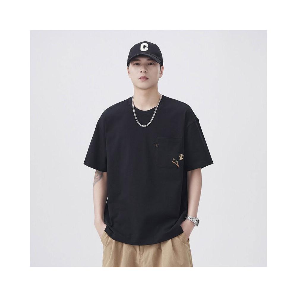 🚀虧本衝評&限時下殺🔥T恤 短袖T恤 短袖上衣 夏季男裝 250g重磅純棉寬鬆短袖t恤男圓領口袋刺繡男士黑色涼感上衣