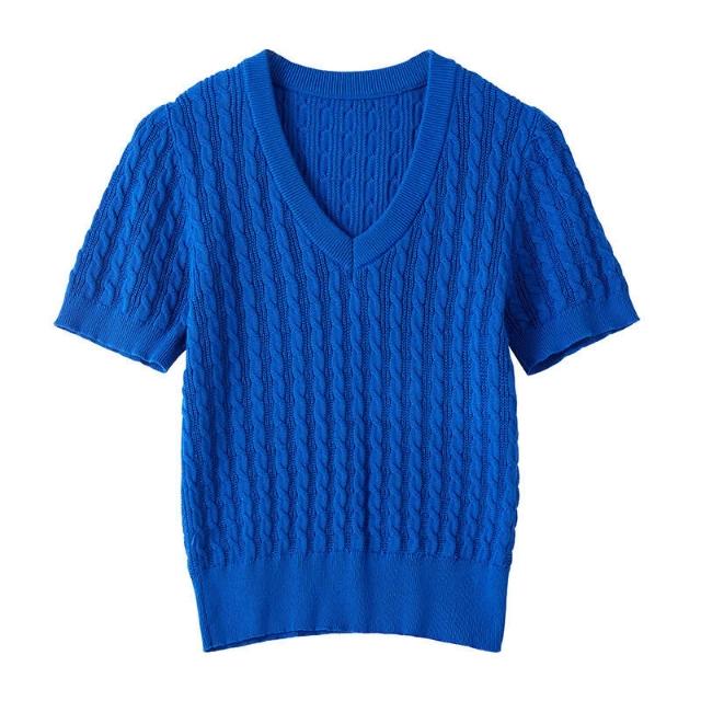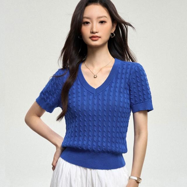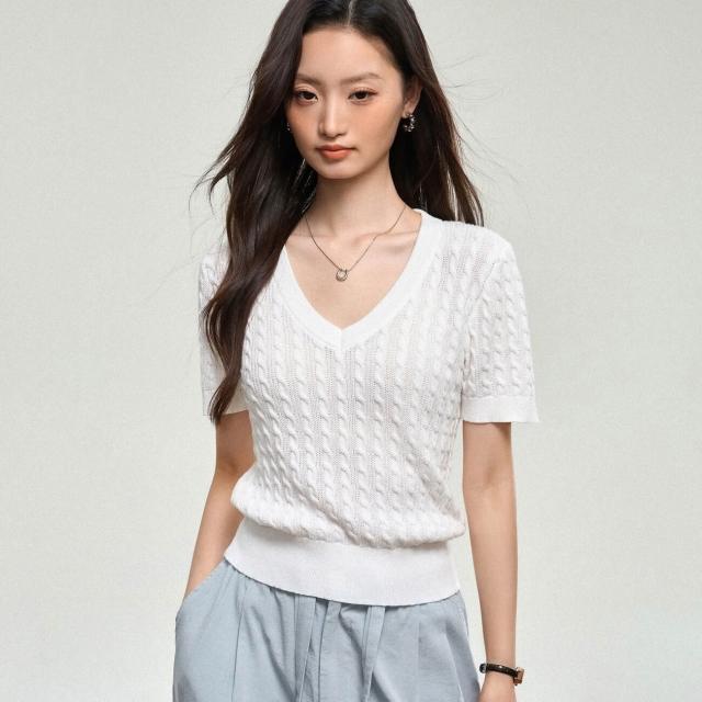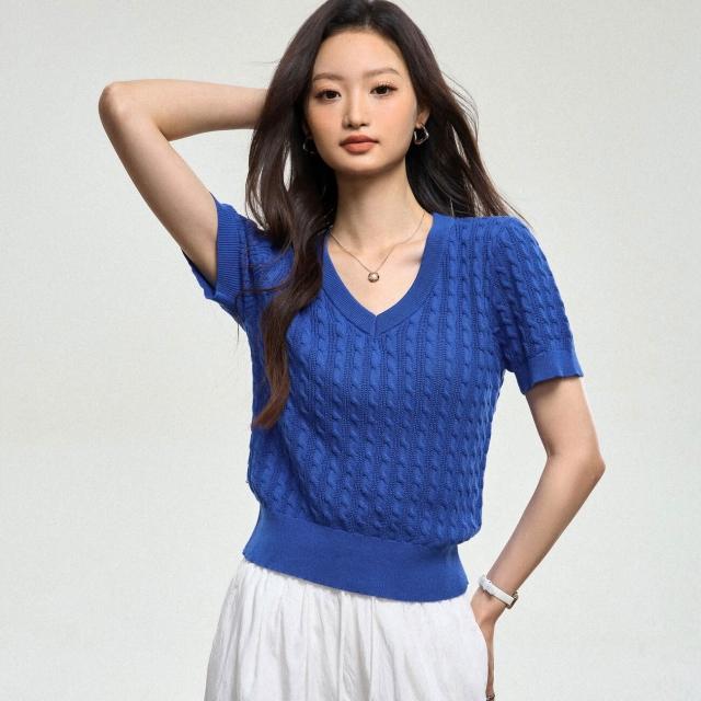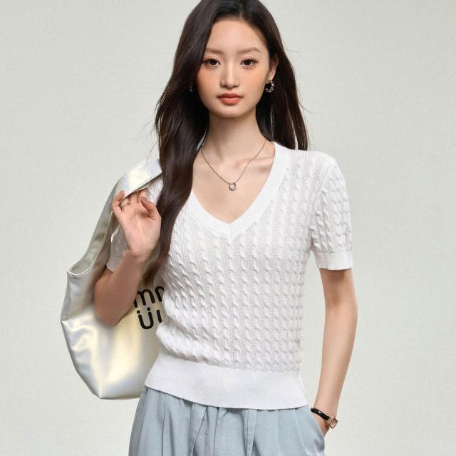 🚀虧本衝評&限時下殺🔥短袖T恤 夏季女裝 100%棉麻花針織衫V領女夏2026新款韓系簡約寬鬆百搭顯瘦短袖上衣
