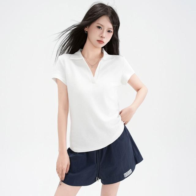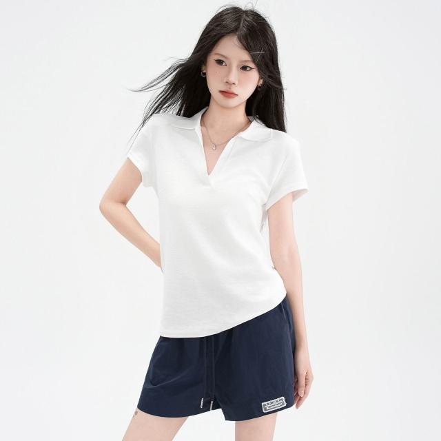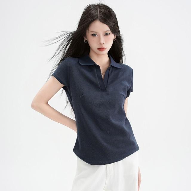 🚀虧本衝評&限時下殺🔥短袖T恤 夏季女裝 藏青色辣妹Polo翻領正肩短袖T恤女2026夏季新款顯瘦百搭上衣