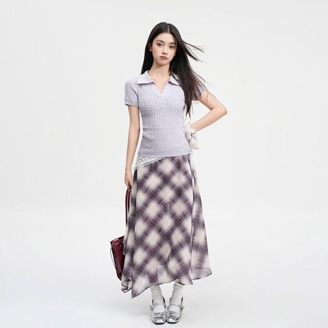 🚀虧本衝評&限時下殺🔥短袖T恤 夏季女裝 紫色辣妹polo翻領正肩針織短袖T恤女夏季新款修身肌理感上衣