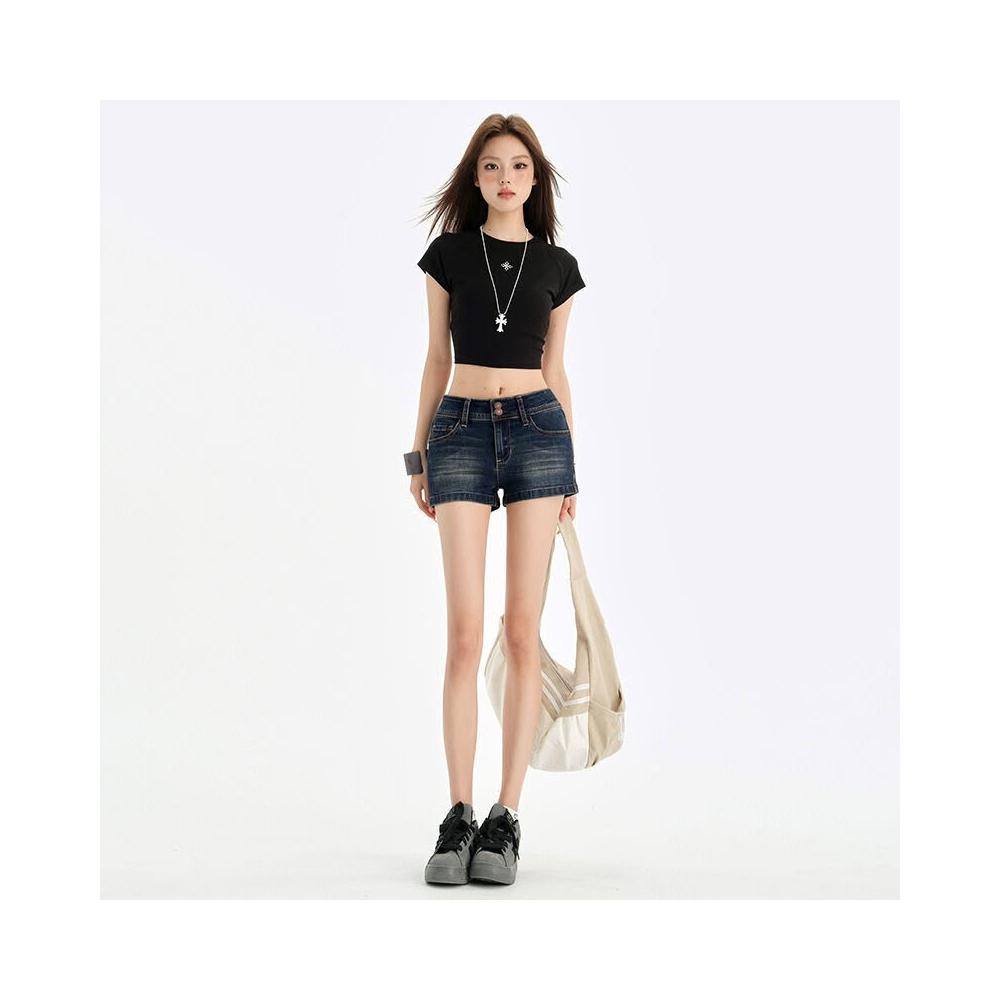 🚀虧本衝評&限時下殺🔥牛仔短褲 夏季女裝 美式復古低腰雙扣牛仔短褲女夏季設計感提臀彈力顯瘦辣妹包臀熱褲