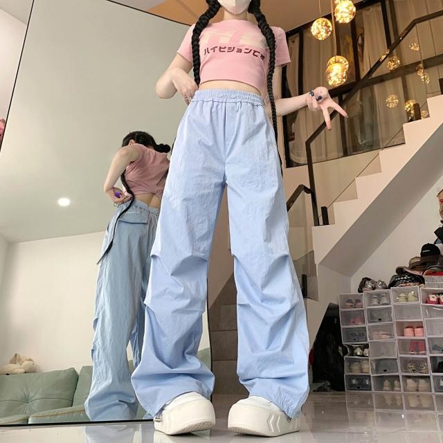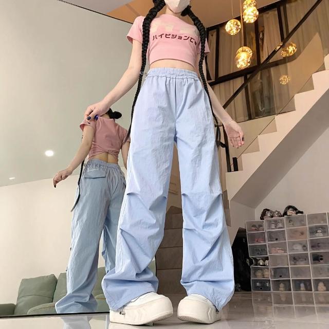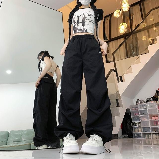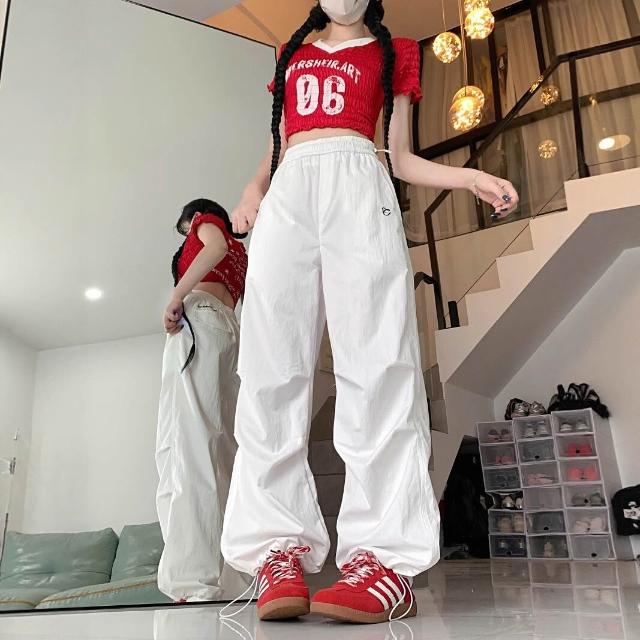 🚀虧本衝評&限時下殺🔥休閒褲 下著 長褲 女裝 美式復古褶皺白色運動風刺繡降傘兵工裝褲女夏季新款寬鬆休閒長褲