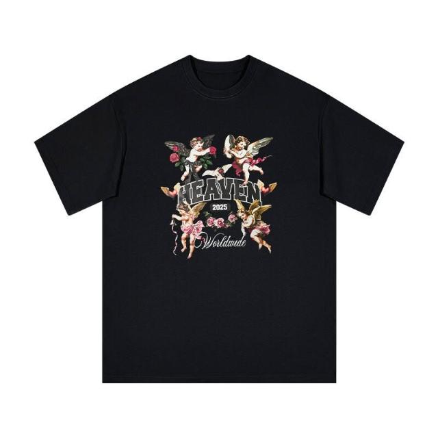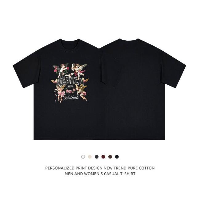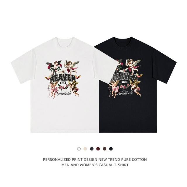 限時下殺 短袖上衣 短袖T恤 夏季女裝 短t 夏季短袖街頭印花T恤情侶純棉新款潮牌休閒重磅美式圓領寬鬆上衣