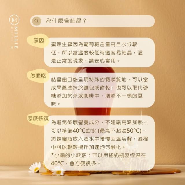 蜜理MILLIE純生封蓋蜜 100%純天然頂級熟成蜂蜜 養生首選 溫潤不燥 居家必備 自然甜味 不加工 不濃縮