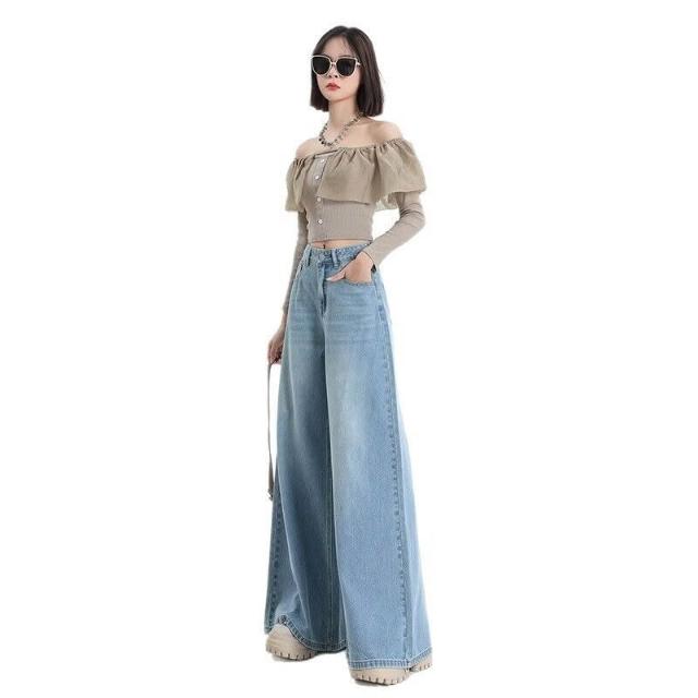 免運 免稅 高腰寬松大闊腿牛仔褲女士歐美外貿跨境亞馬遜OZON復古jeans批發