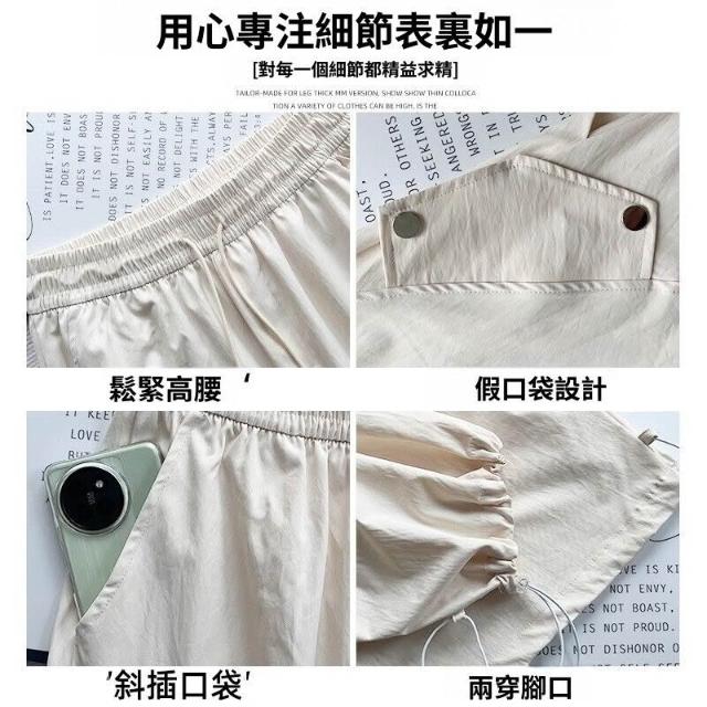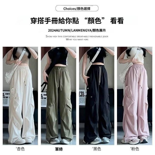 免運 免稅 美式傘兵工裝褲子女春秋新款高腰復古直筒運動褲戶外速幹闊腿長褲