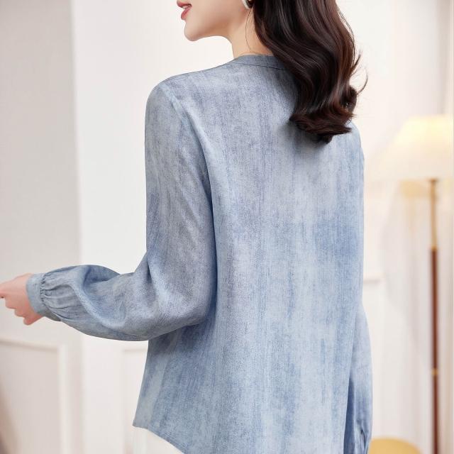 免運 免稅 杭州真絲襯衫女2026新款早春圓領洋氣休閑減齡開衫牛仔桑蠶絲上衣