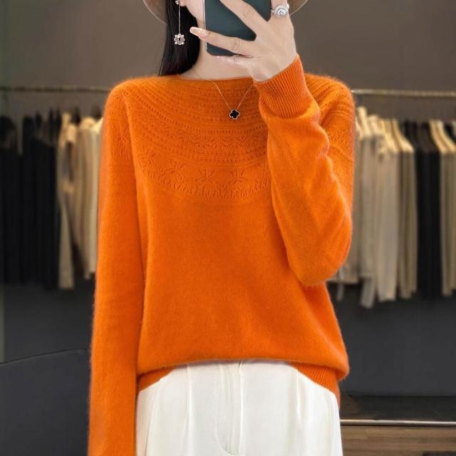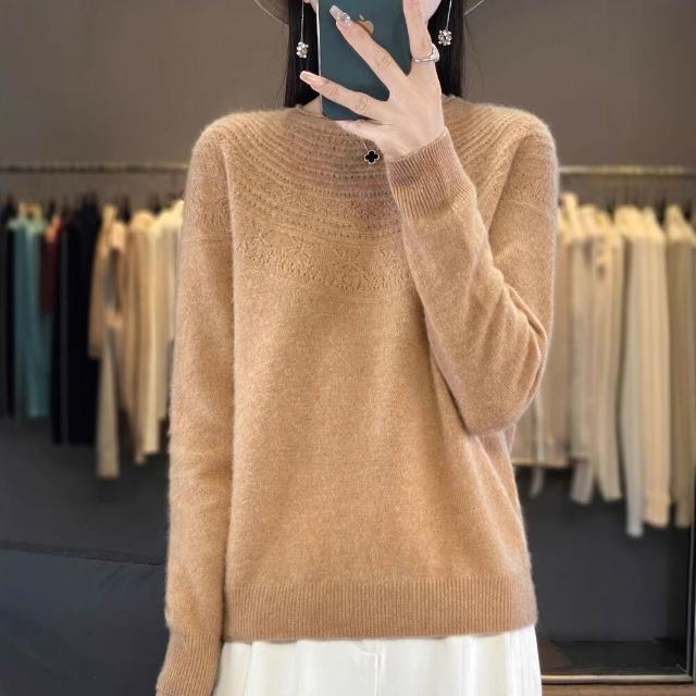 免運 免稅 跨境秋冬新款安迪絨針織衫女圓領一線成衣镂空套頭毛衣女打底