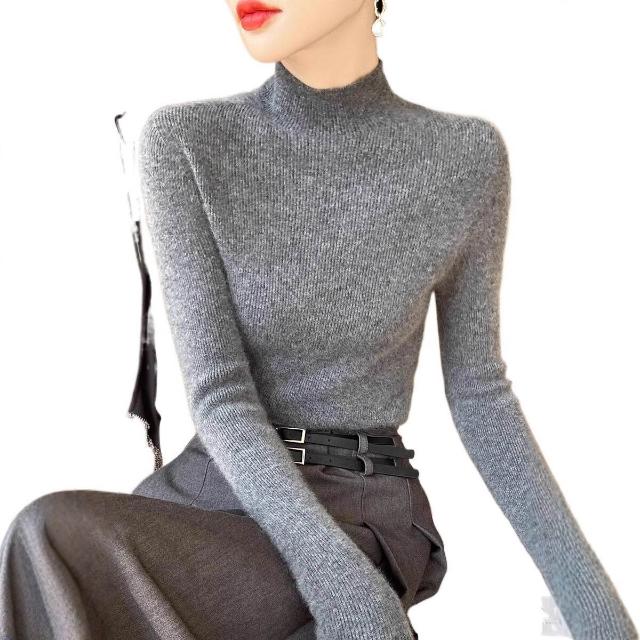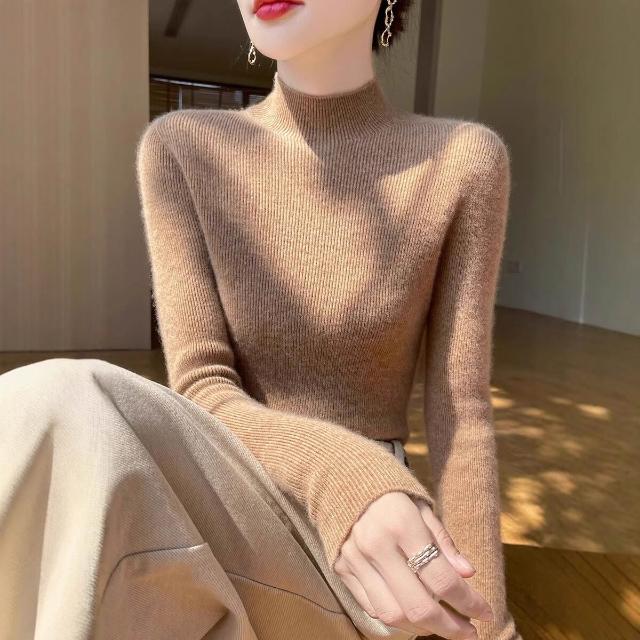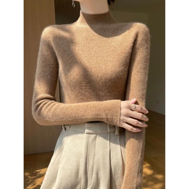 免運 免稅 一線成衣新款修身顯瘦無縫針織上衣氣質優雅半高領打底衫女士
